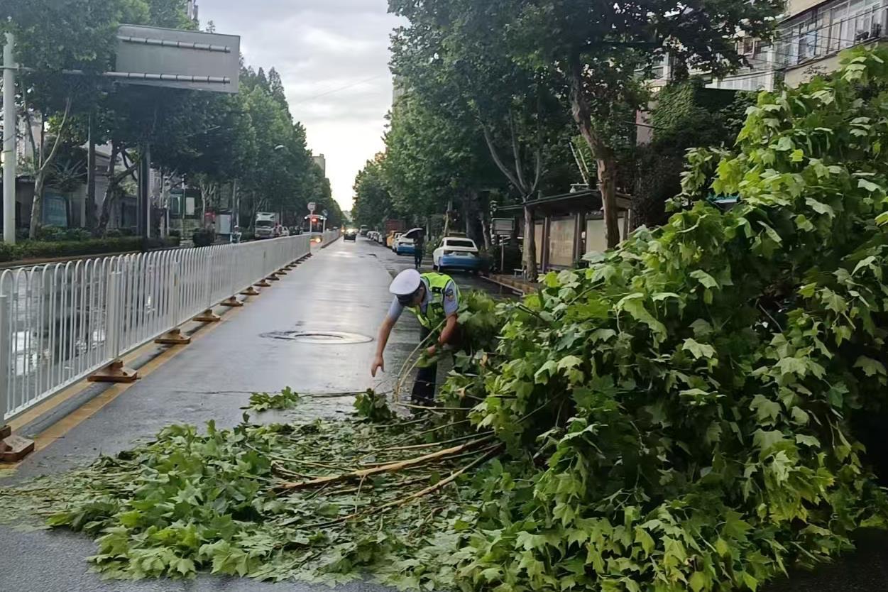 10时许,汉阳区分局建桥派出所社区民警邬雄漫在巡查时,发现阳新路某餐馆门口的一棵大树倾倒,严重阻碍行人和车辆通行。他立即联系社区及园林部门,并在现场疏导过往车辆和居民,经过近1小时的紧张作业,倒伏树木被彻底清除,路面恢复整洁畅通。