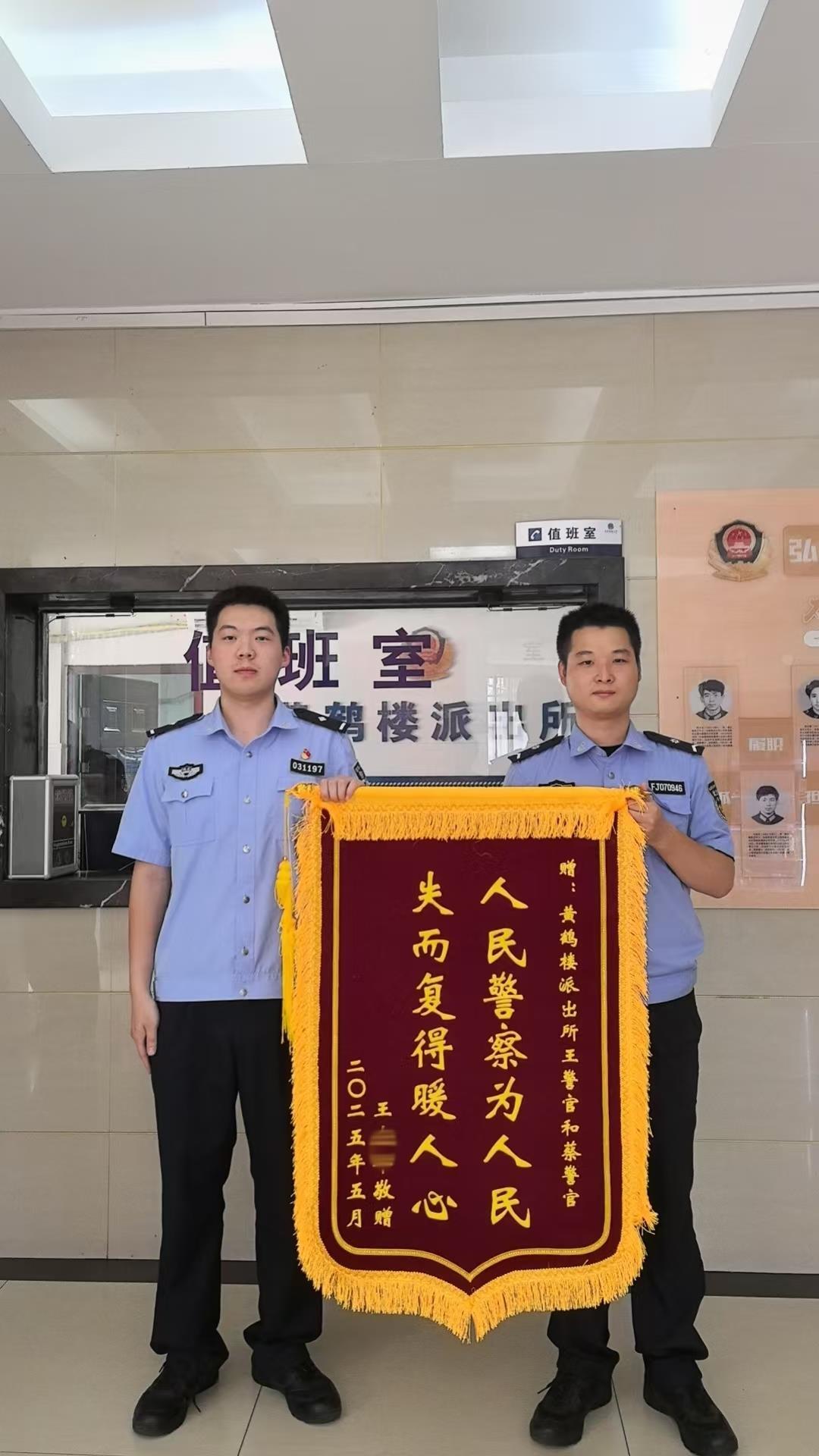 民警王子骏、辅警蔡世鑫收到锦旗