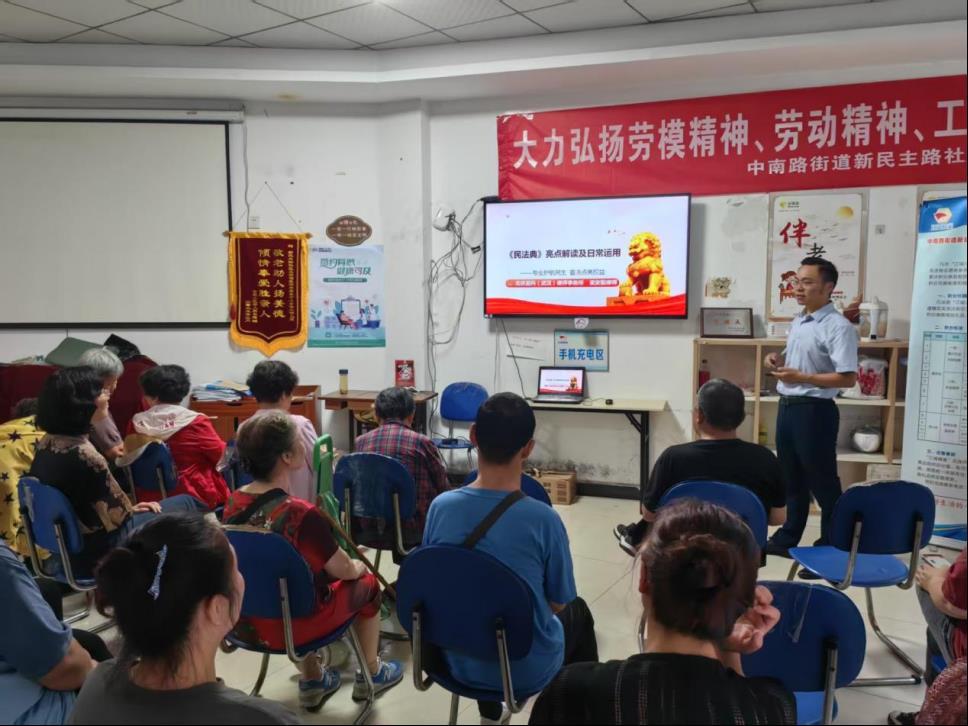 5月22日,武汉市武昌区中南路街道新民主路社区50余位居民齐聚一堂,共同聆听由武昌区司法局中南路司法所社区法律顾问、北京盈科(武汉)律师事务所资深律师梁安毅主讲的《中华人民共和国民法典》专题讲座。