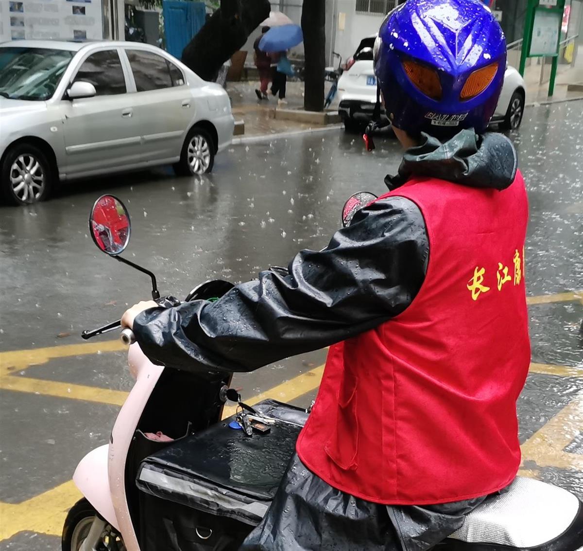 5月22日,一场突如其来的大雨给居民出行带来诸多不便。在武汉市武昌区水果湖街道放鹰台社区老年人服务中心,长江康养志愿者将饭菜打包好,冒雨为社区高龄、独居老人配送爱心餐食。