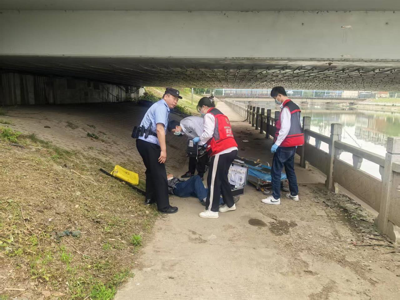 近日,武汉经开区公安分局沌口派出所民警段永强和辅警周靖明完成兰亭大境的出警任务后,正驱车返回。当他们途经蔡甸区东湖泵站桥时,一辆停靠在桥头的救护车引起了他们的注意。只见几名急救人员正焦急地向桥下张望,神情十分紧张。