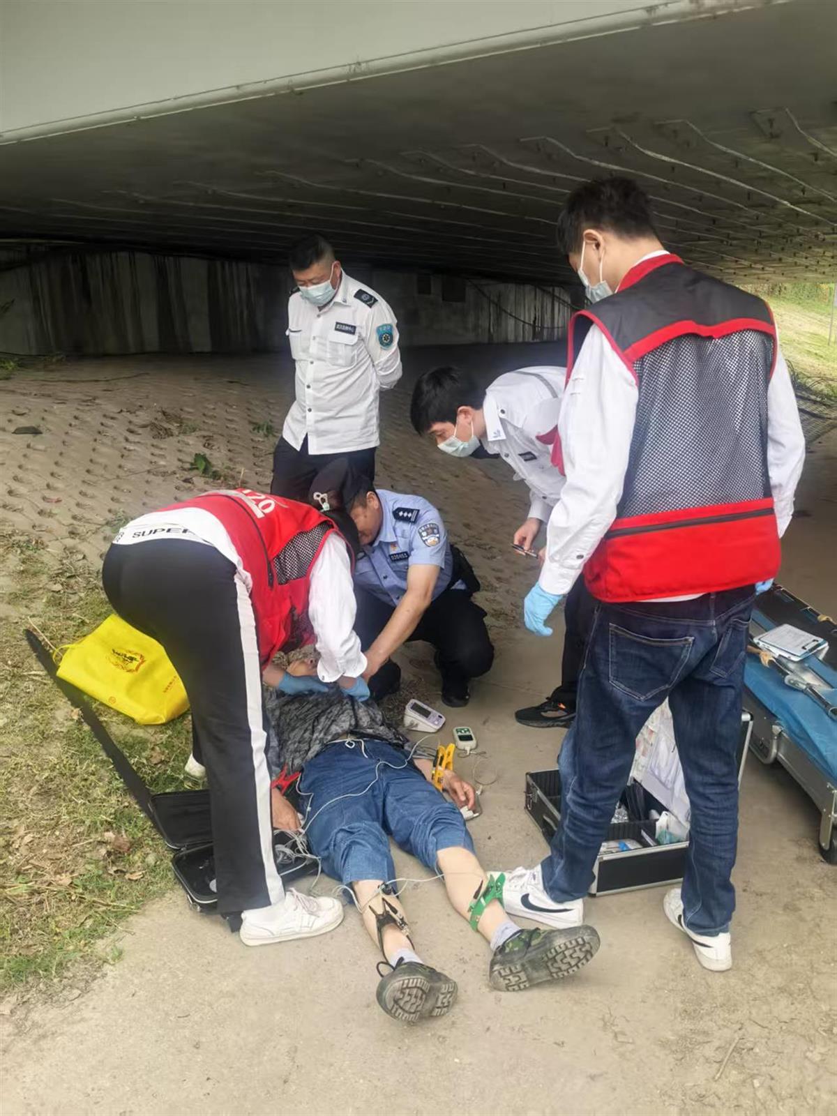 果然,在桥下的小路上,一位老人正躺在地上,呼吸微弱,情况十分危急。段永强一边迅速联系老人的家属,一边协助急救人员展开救援工作。通过与老人女儿取得联系,段永强得知老人姓谈,75岁高龄,早上独自一人从青山来到东湖泵站河钓鱼。