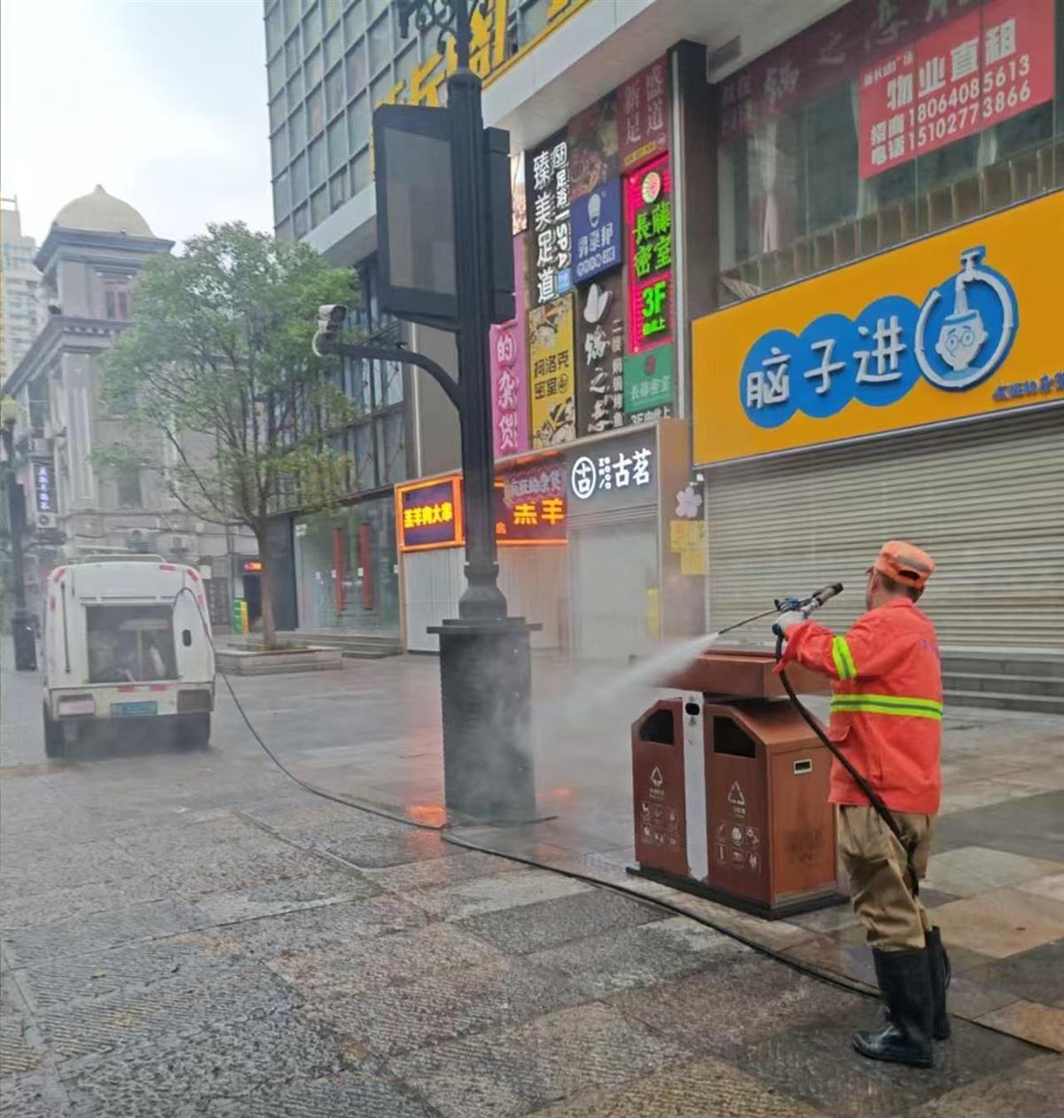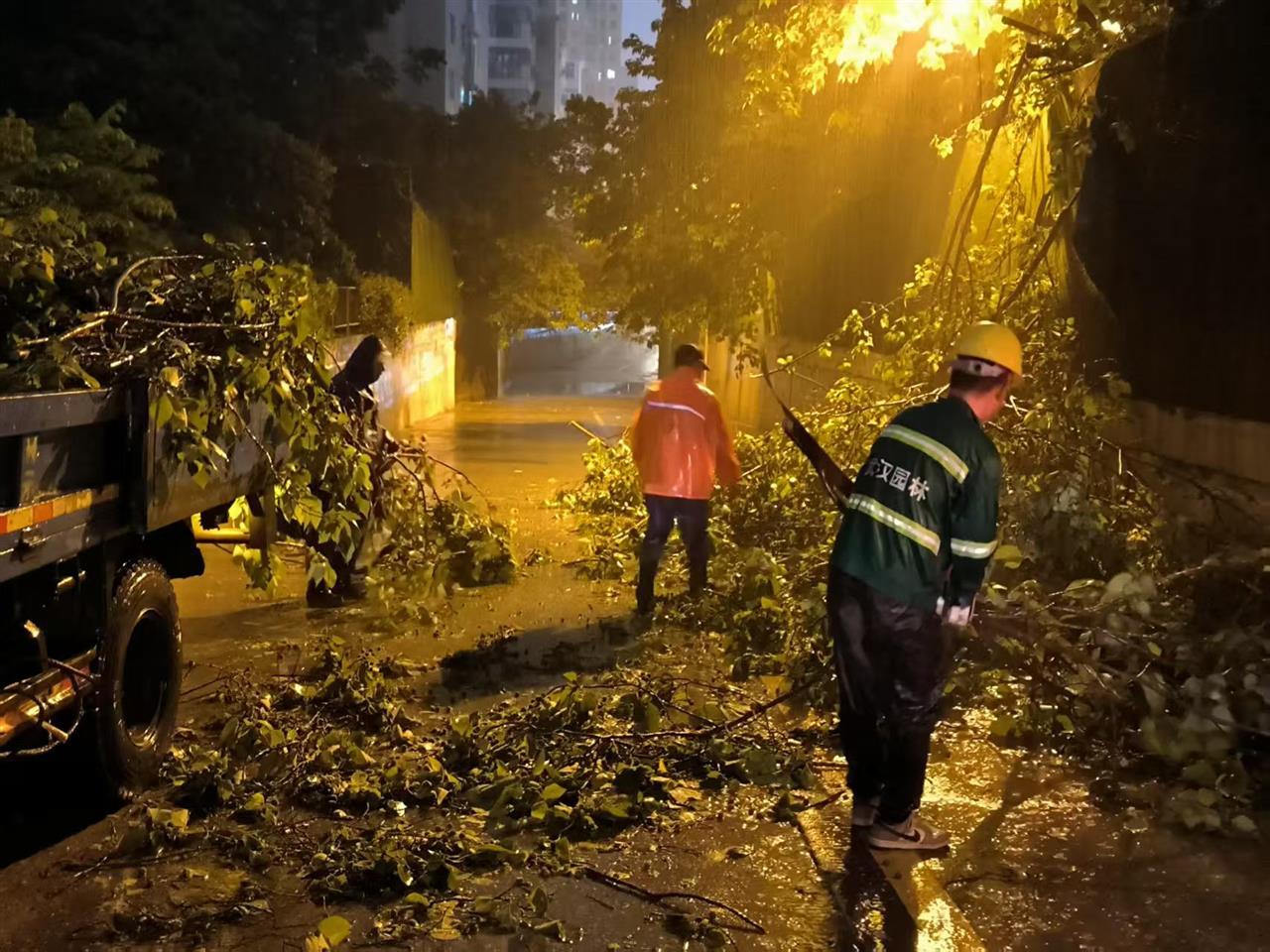 5月22日,强降雨来袭,江汉区城管执法局启动应急预案,及时组织环卫、园林绿化、道路桥梁等部门对城区道路环境、市政设施等进行全面清理排险,确保市容环境正常有序。