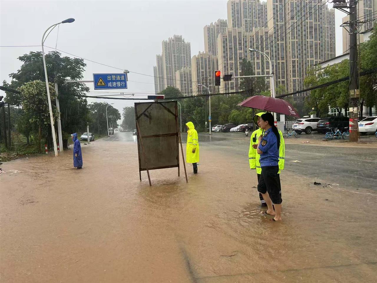 积水点位当路标,并协同交通部门封闭路口,设置警示标识,引导车辆行人绕行。