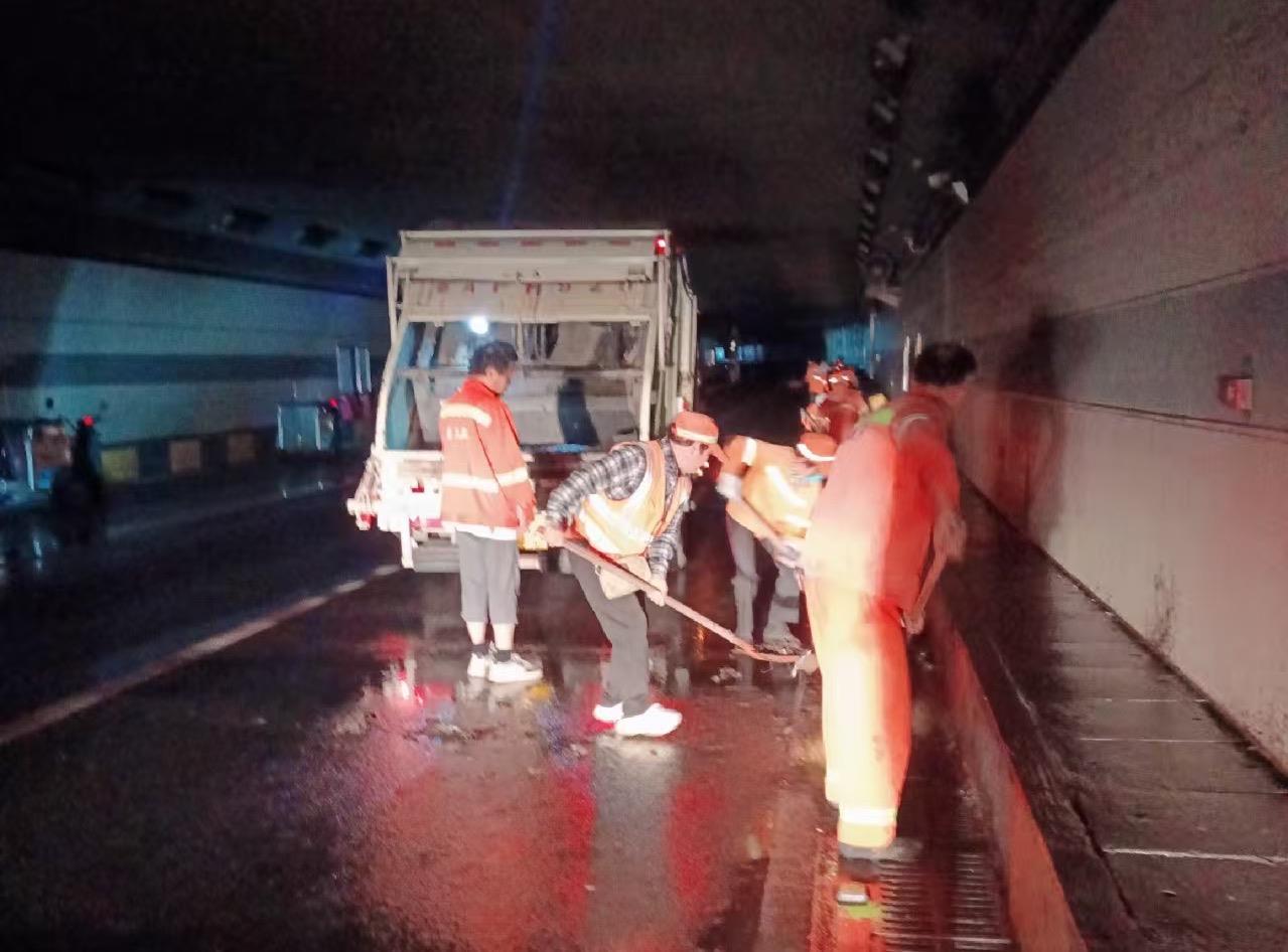 凌晨6时30分许,经过连续奋战2个多小时,共清理各类垃圾4余吨,有效保证八一路地下通道通畅。