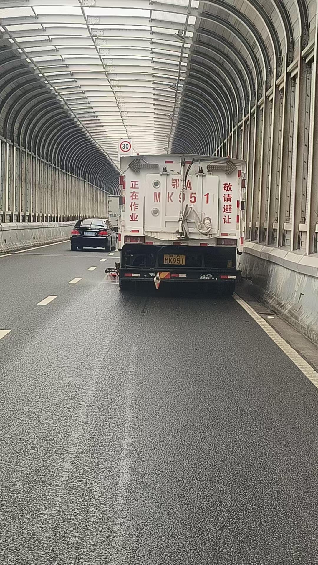 中南路清洁队迅速响应,于5月23日凌晨4时许,集结30余名环卫工人与6台环卫作业车辆,组成“攻坚小队”,采用“人工 + 机械”的深度保洁模式,对通道进行全方位清理。
