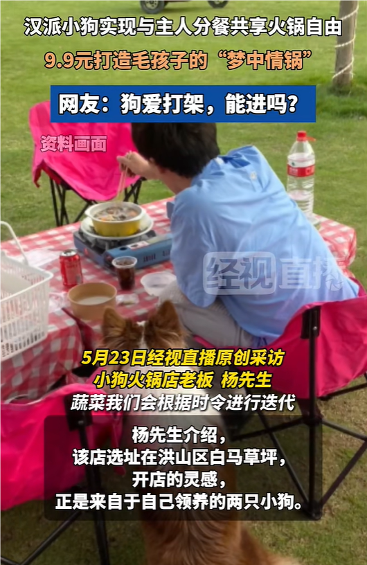5月23日,经视直播记者联系到该店老板杨先生。他介绍,店内不仅提供人类食用的火锅,还推出专为小狗定制的特色火锅,9.9元一份。小狗火锅按照高校推出的小狗辅食菜单配比设计,一次性铝制压缩碗为烫锅,菜单会依据时令和小狗喜好灵活调整。“锅、筷子、碗全部都是单独的,因为怕狗狗会被烫着,还会专门准备一个一次性的碗盛放冰水。”杨先生透露,开店灵感来自于自己领养的两只小狗,一方面想为自己的两只小狗打造更好的生活环境,另一方面,店内张贴着小狗领养信息,希望借此呼吁更多爱狗人士践行“领养代替买卖”理念。