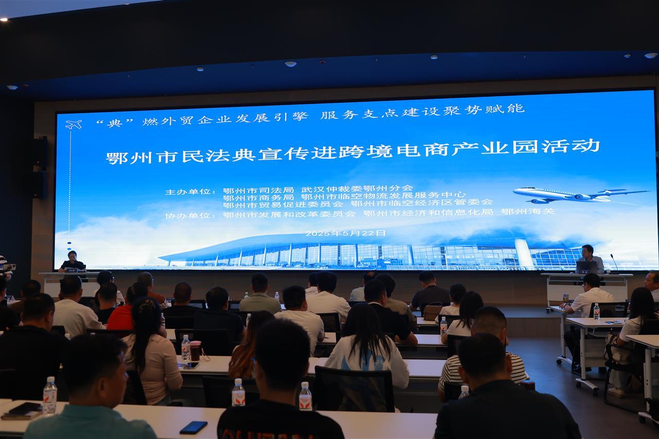 5月22日上午,武汉仲裁委员会、鄂州市司法局、鄂州仲裁委员会联合市商务局、市临空物流中心、鄂州市贸易促进委员会、临空经济区管委会等单位共同主办的“民法典进外贸企业”专题宣讲会在鄂州临空经济区圆满举行。
