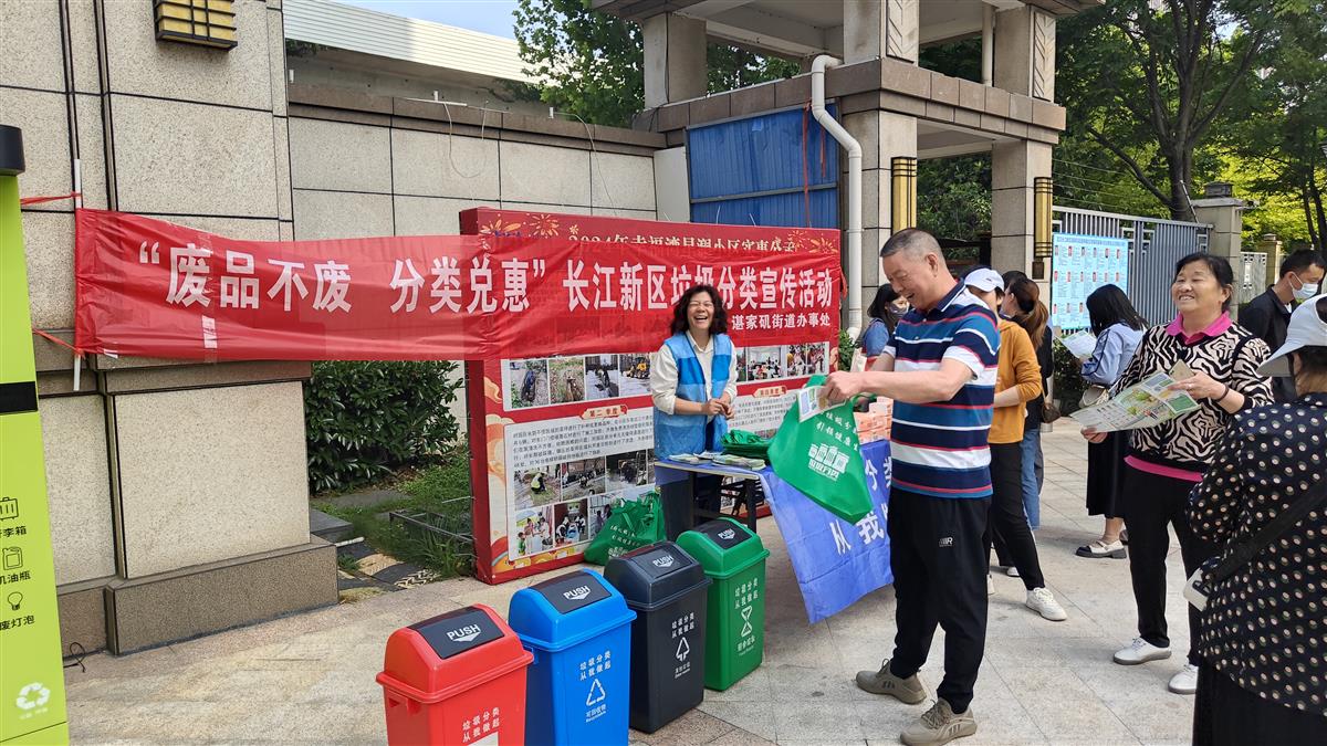 5月23日下午,武汉长江新区谌家矶街道幸福社区星澜小区内欢声笑语不断,一场以“废品不废、分类兑惠”为主题的垃圾分类宣传活动正火热开展。此次活动通过寓教于乐的形式普及垃圾分类知识,以积分兑换奖励机制激发居民参与热情,吸引了许多辖区居民踊跃参与。