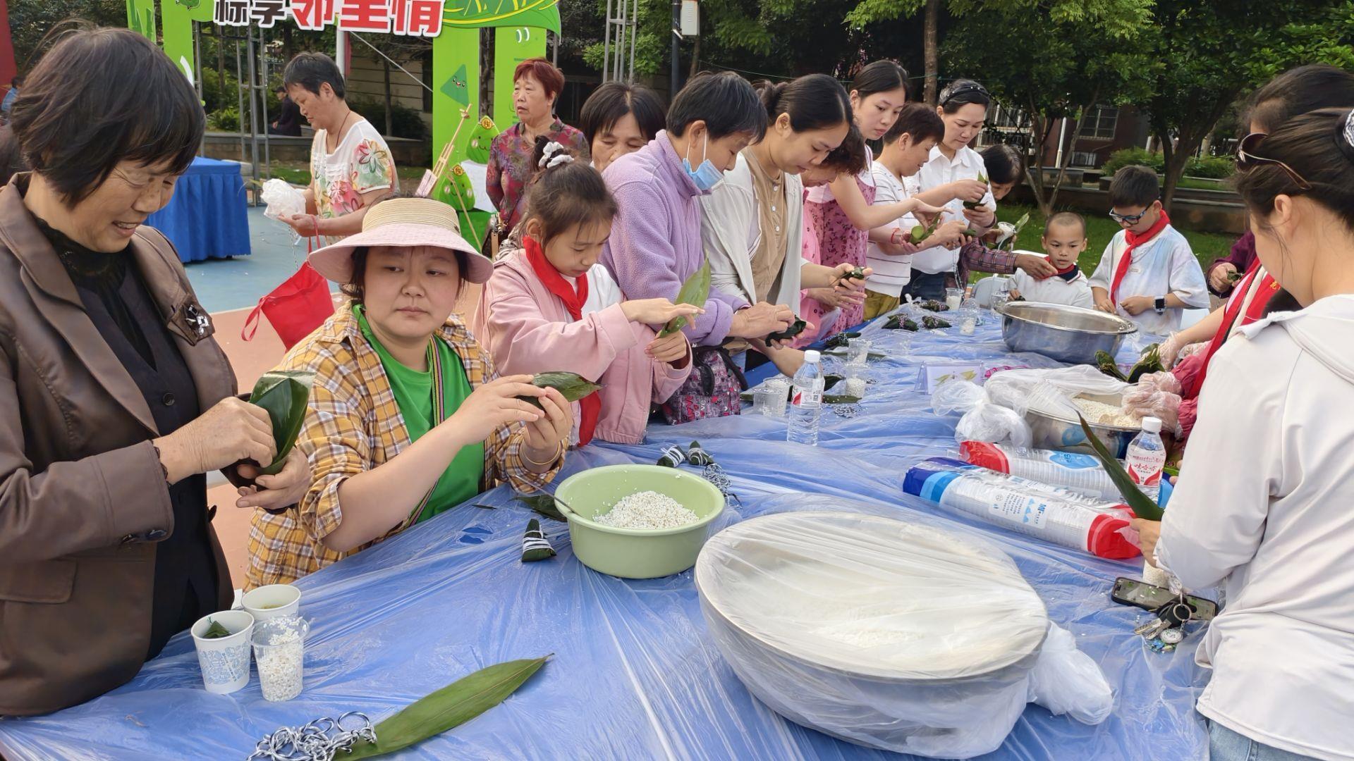 粽叶飘香,创意飞扬!在包粽子区,糯米、粽叶、红枣等材料整齐摆放,亲子家庭围坐一起,在志愿者指导下学习包粽子技巧。包粽子比赛更是点燃了大家的热情,“最快完成奖”“最有创意奖”等趣味奖项让现场充满欢声笑语。手绘咸鸭蛋区域同样热闹,家长和孩子发挥奇思妙想,用安全环保的颜料在咸鸭蛋上绘制出独一无二的精美图案,让大家在实践体验中感受传统文化的魅力,收获满满的成就感。