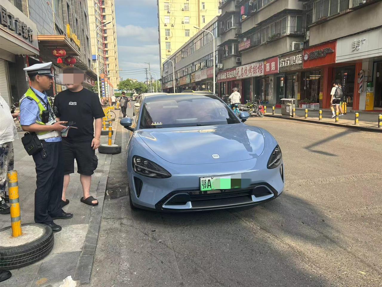 5月20日7时许,武汉市公安局洪山区分局交通管理大队二中队指挥室视频巡查时,发现一辆新能源小汽车在辖区伏泉路违停,前车牌被疑似纸巾的物品遮挡。指挥室民警随即调取城市视频监控录像回放违法经过,并通知附近巡逻警力前往现场查处。