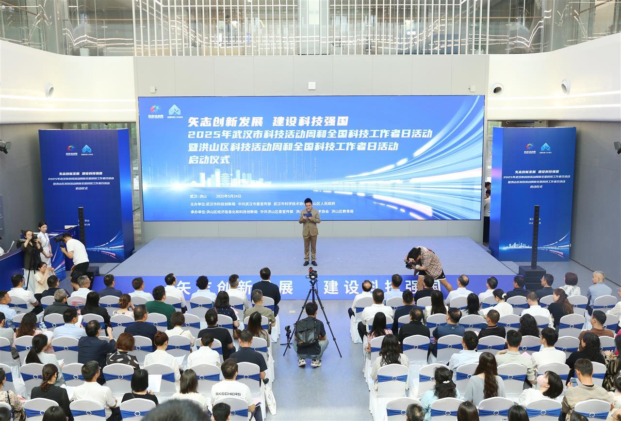 5月24日上午,在洪山区第三小学啦啦队活力四射的《炫彩童年》表演中,2025年武汉市科技活动周和全国科技工作者日活动暨洪山区科技活动周和全国科技工作者日活动在洪山科创大厦正式启动。