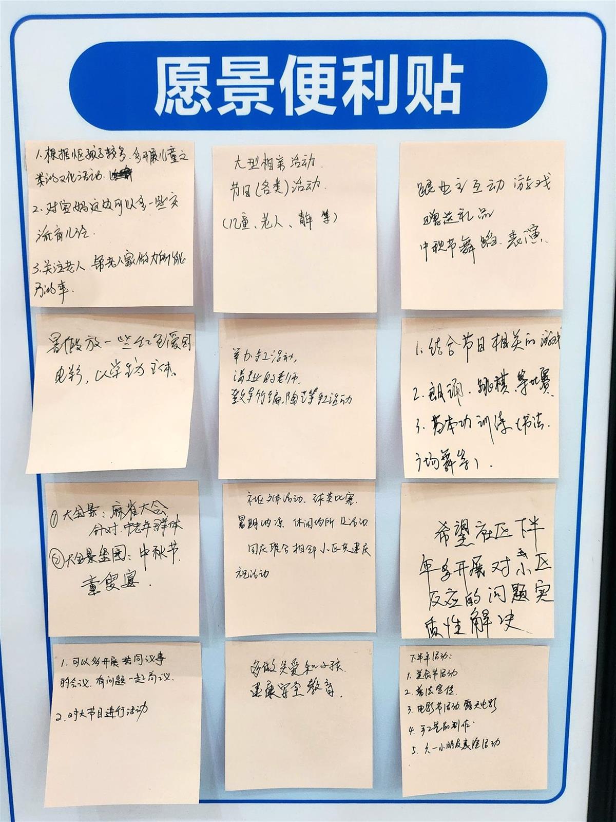 结合社区“意见聚焦板+愿景便利贴”相关内容,便捷提升居民活动参与度。