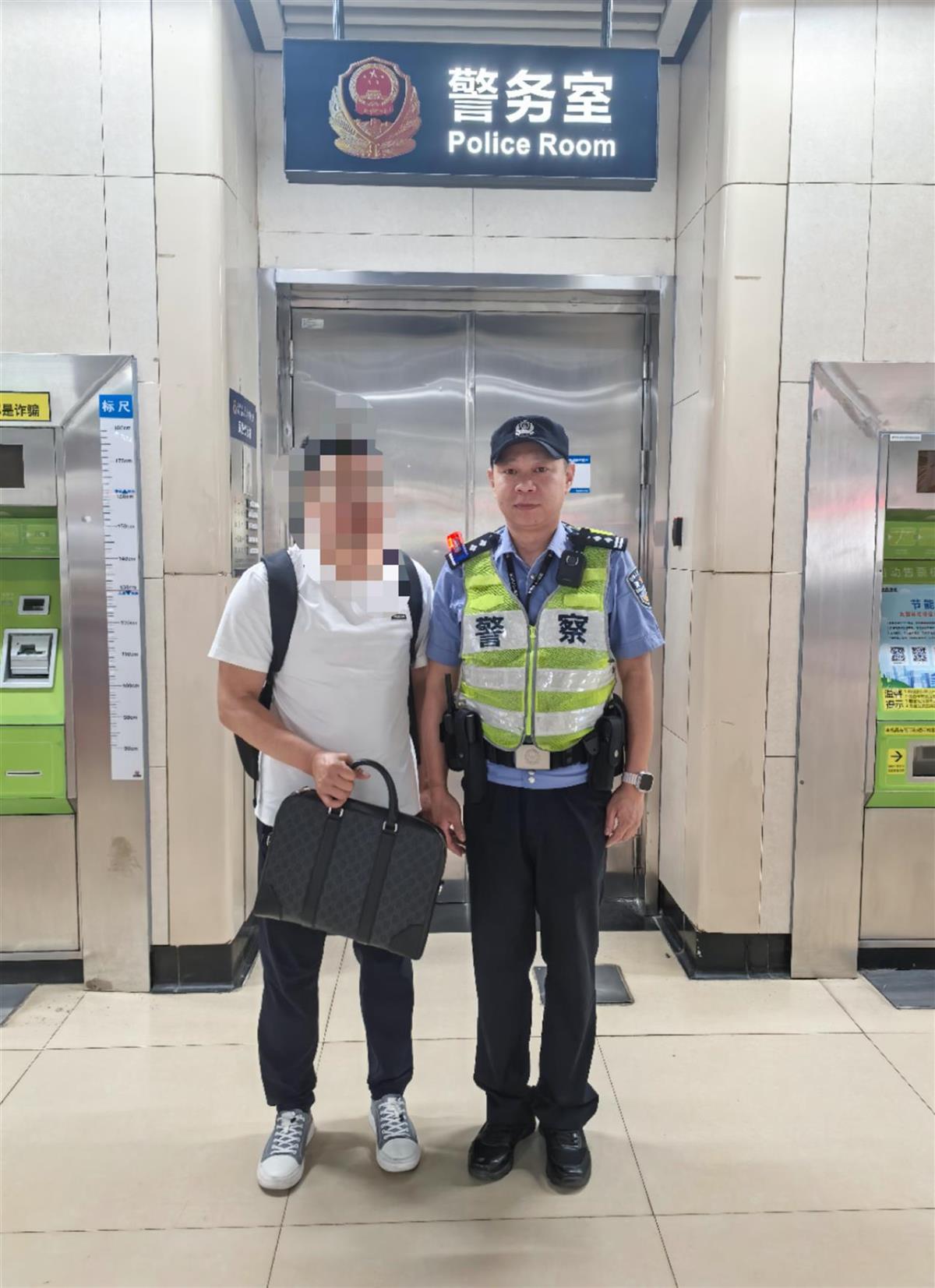 接到求助后,黄文龙迅速将情况报告给民警李鹏。李鹏耐心安抚黄先生的情绪,并根据其提供的轨迹信息调看站内监控寻找。