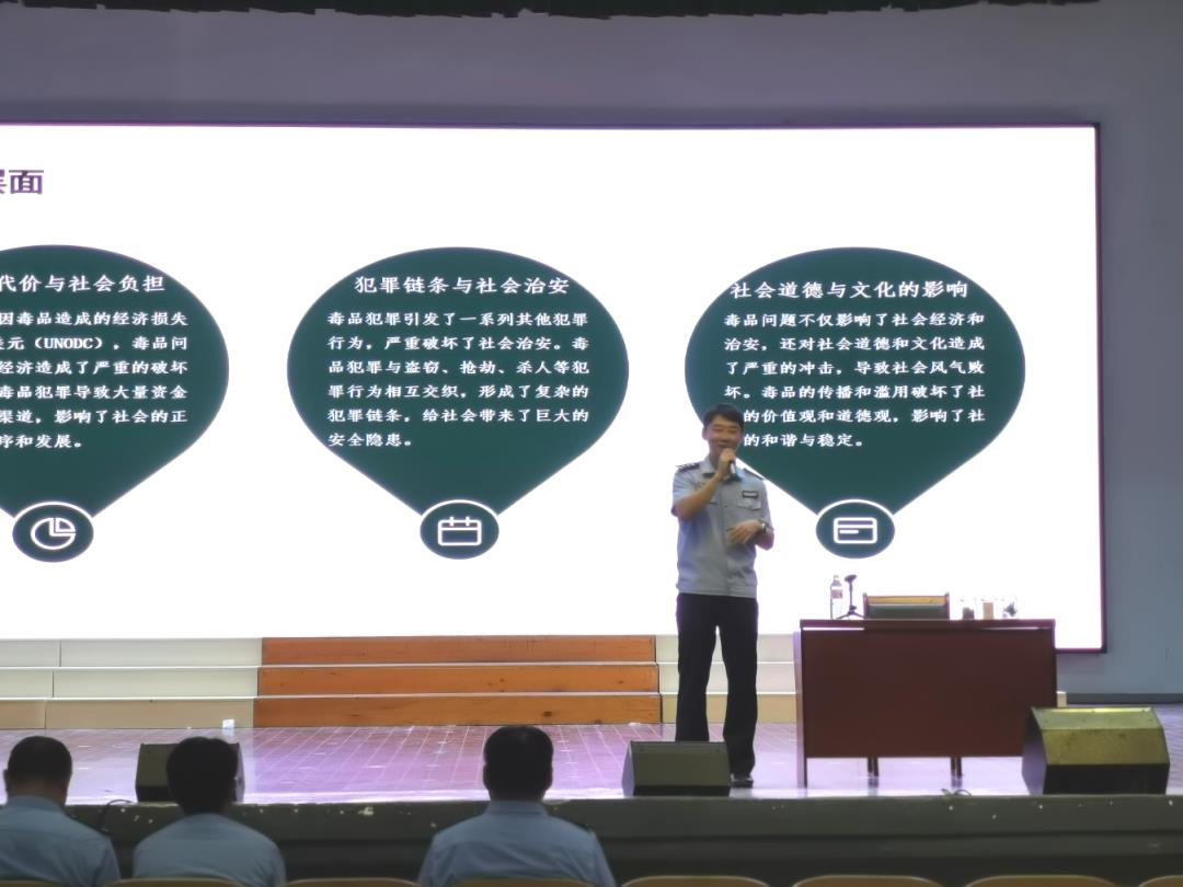 近日,武汉市司法局何湾强制隔离戒毒所来到武汉工程大学开展了一场主题为“全民共治预防青少年药物滥用”的禁毒宣教活动。此次活动旨在将专业戒治经验与高校思政教育深度融合,为400余名师生打造一场全方位、立体化的禁毒教育课堂,进一步筑牢了校园禁毒防线。