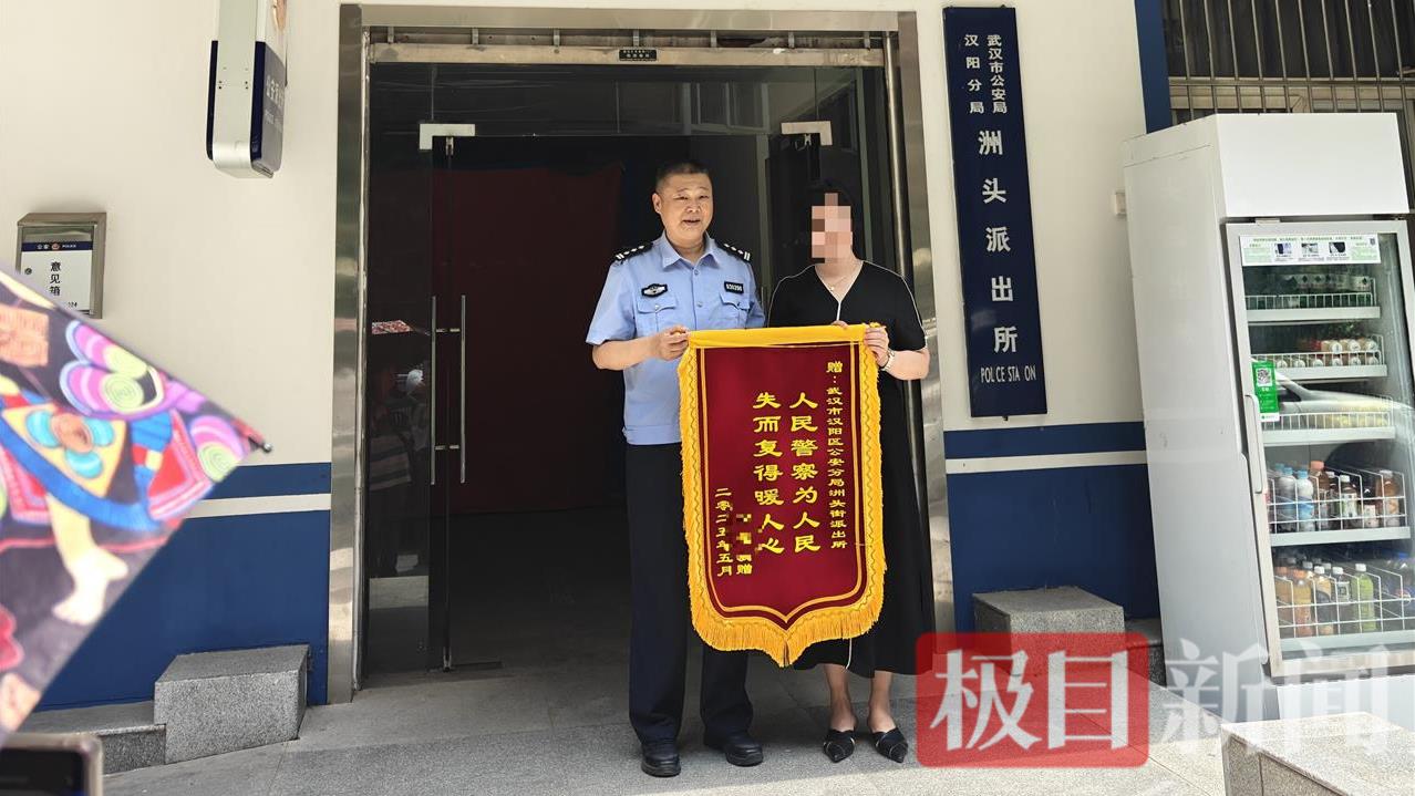 随后,徐女士一行人手持锦旗,来到汉阳区公安分局洲头派出所。阳光洒在“人民警察为人民失而复得暖人心”的锦旗上,映得金字格外醒目。见到李斌警官的瞬间,徐女士快步上前紧紧握住他的手,激动的手微微颤抖:“李警官,真不知道该怎么感谢您!要不是您,这笔钱可就找不回来了!”