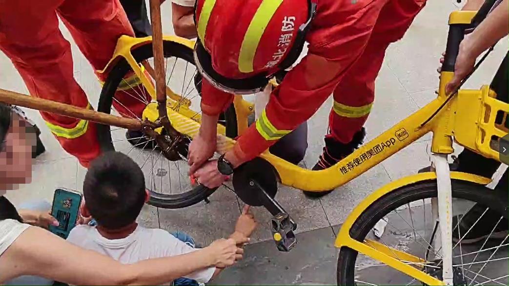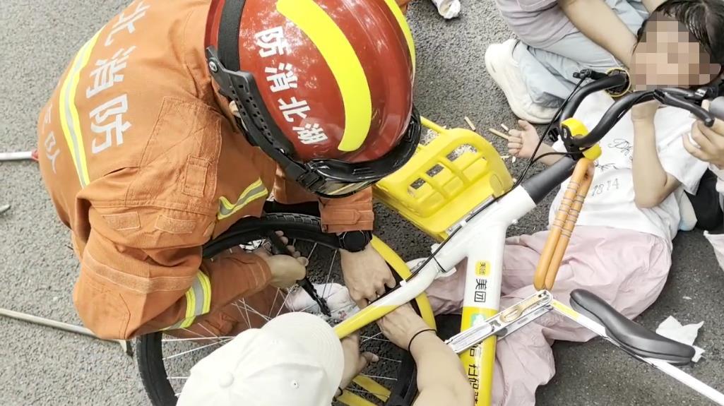 武汉消防提醒:家长务必加强儿童的安全教育,让孩子充分认识到日常生活中可能存在的危险。骑行共享单车时禁止载人,更不要在单车上加装座椅或进行其他改装。一旦遇到儿童不慎被卡自行车或电动自行车的情况,家长切勿慌张,不要生拉硬拽,首先要将车辆平稳放平,可就近寻找工具施救。若难以自行处理,要第一时间拨打119或120求救。