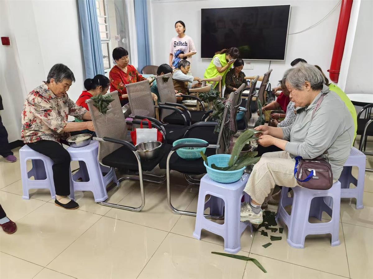 活动当日,各社区老年人服务中心内一片热闹景象。包粽子活动现场,老人们纷纷拿出看家本领,一片片清香的粽叶、一粒粒晶莹的糯米,在大家的巧手下瞬间变成了一个个饱满诱人的粽子。大家围坐在一起,一边包粽子,一边唠家常,分享着生活中的点滴趣事,现场欢声笑语不断,其乐融融,充满了浓浓的节日氛围。