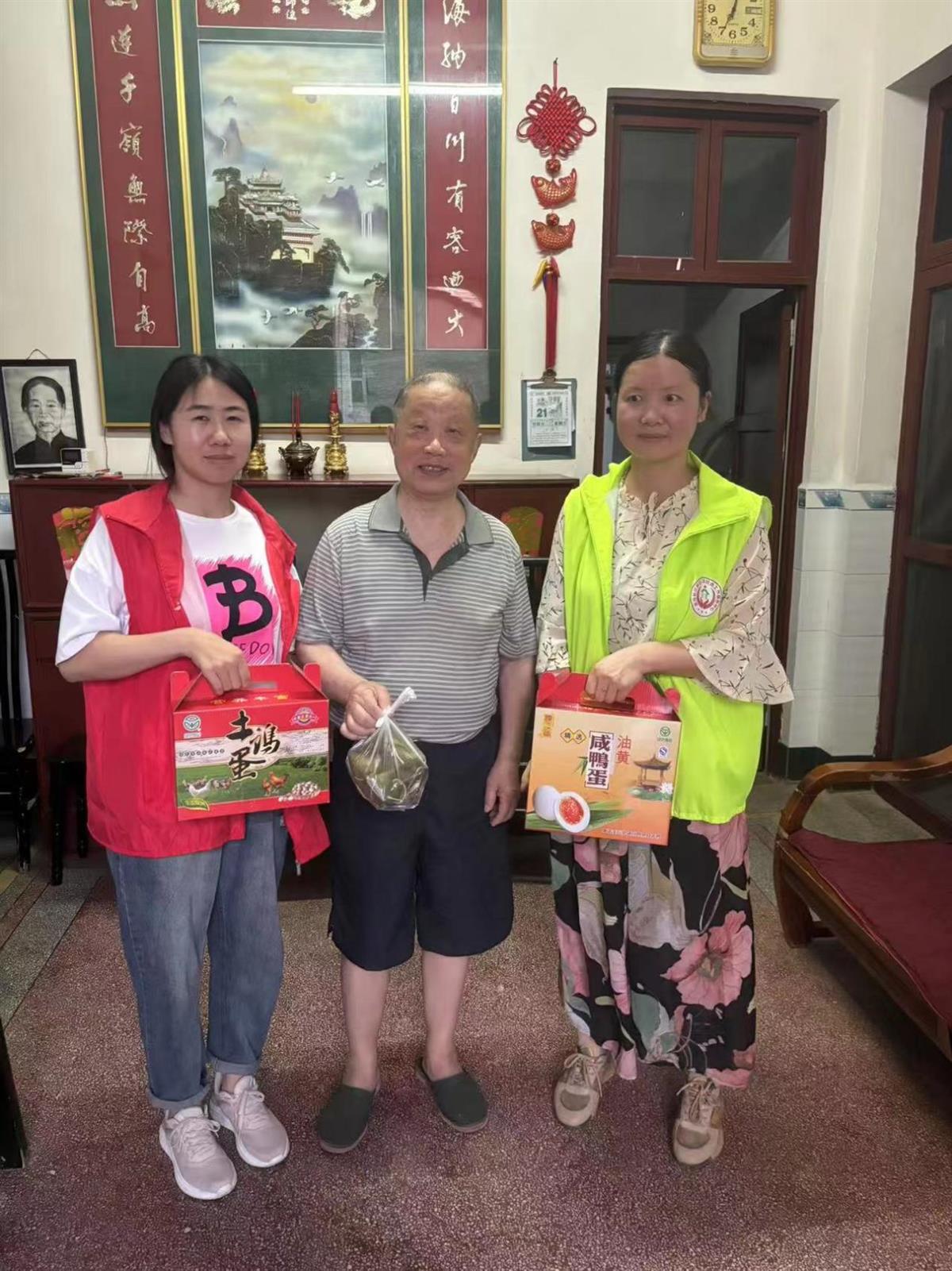 为了让社区内行动不便的老人也能感受到节日的温暖,志愿者们与社区工作人员一起,带着包好的粽子和鸡蛋,分组前往老人家中进行入户慰问。每到一户,志愿者们都与老人亲切交谈,详细了解他们的生活状况和身体情况,叮嘱他们要注意身体健康,并为他们送上节日的祝福。老人们接过粽子和鸡蛋,脸上洋溢着幸福的笑容,对志愿者们的关心和慰问表示衷心的感谢。