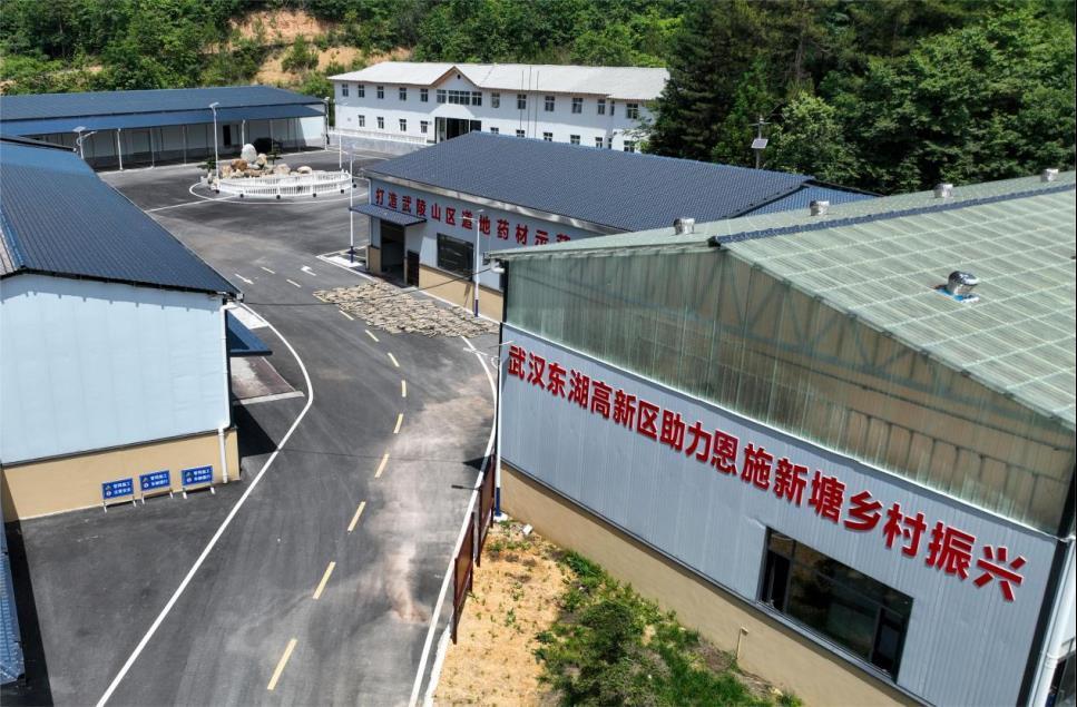 在恩施市新塘乡下坝村,光谷援建的新塘中药材产业园内,“东湖高新区助力恩施新塘乡村振兴”“打造武陵山区道地药材示范产业园”的红色标语格外醒目。这座建成于2022年的产业园,所生产的产品远销海外,总产值超3000万元,为当地中药材产业发展注入强大动力。