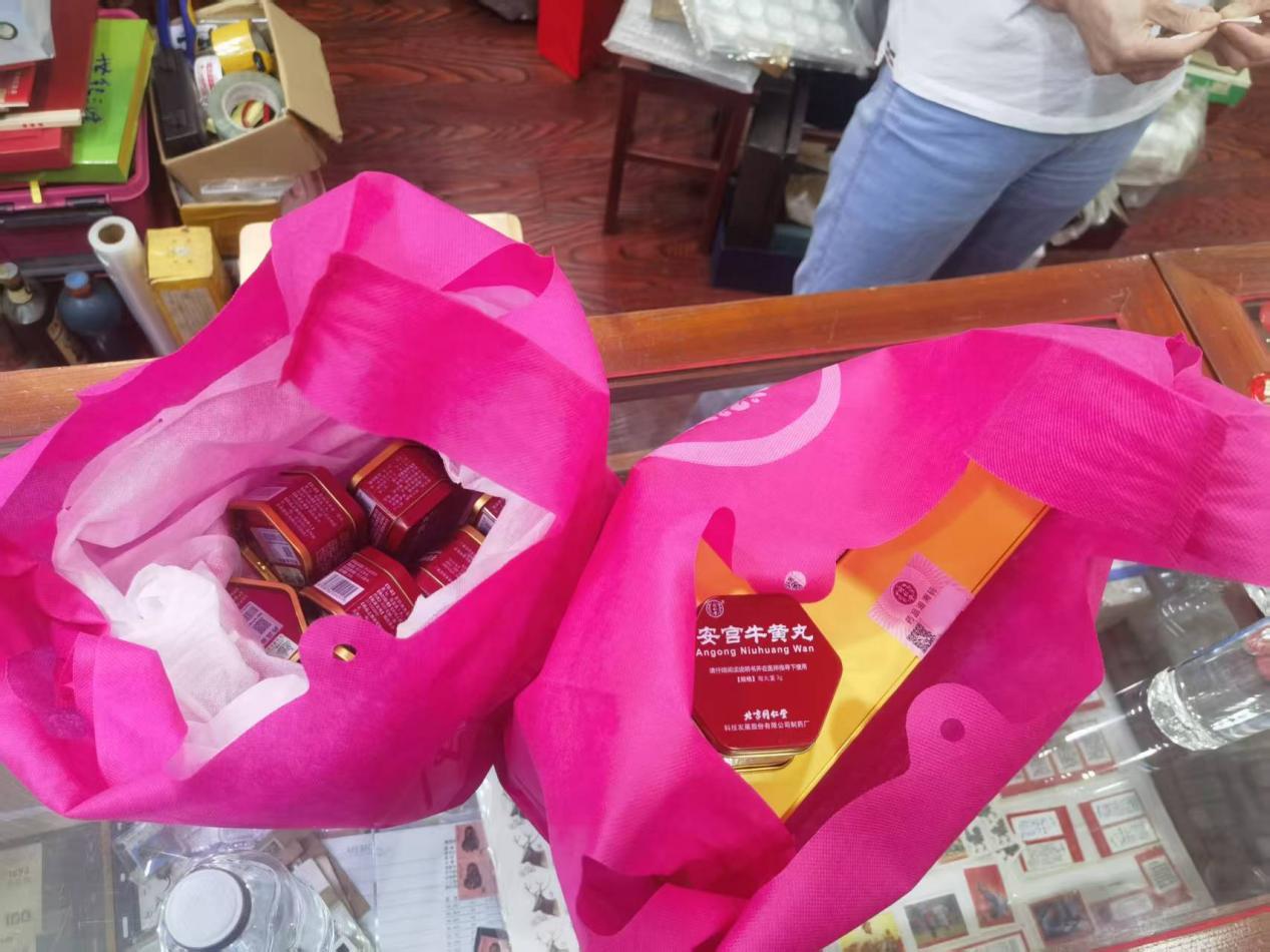 5月3日,追查视频发现,嫌疑人一早从江岸区福星惠誉榜样小区出现,后两次进出东方华府并前往武汉市收藏品市场中的某一店面中,民警推测系嫌疑人销赃地点,随即前往走访问询,店铺老板承认当日以8400元收购24盒安宫牛黄丸,并提供了交易时的视频录像。