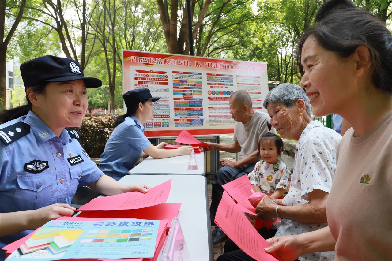 现场,民警们积极地向群众发放精心准备的普法宣传页,形成“领取一份、带动全家、辐射社区”的传播效应。“以前觉得民法典遥不可及,今天才发现它就像空气和水,时时刻刻都在保护着我们。”参与活动的王大爷感慨道。此次宣传活动不仅打通了普法“最后一公里”,更架起了警民“连心桥”。