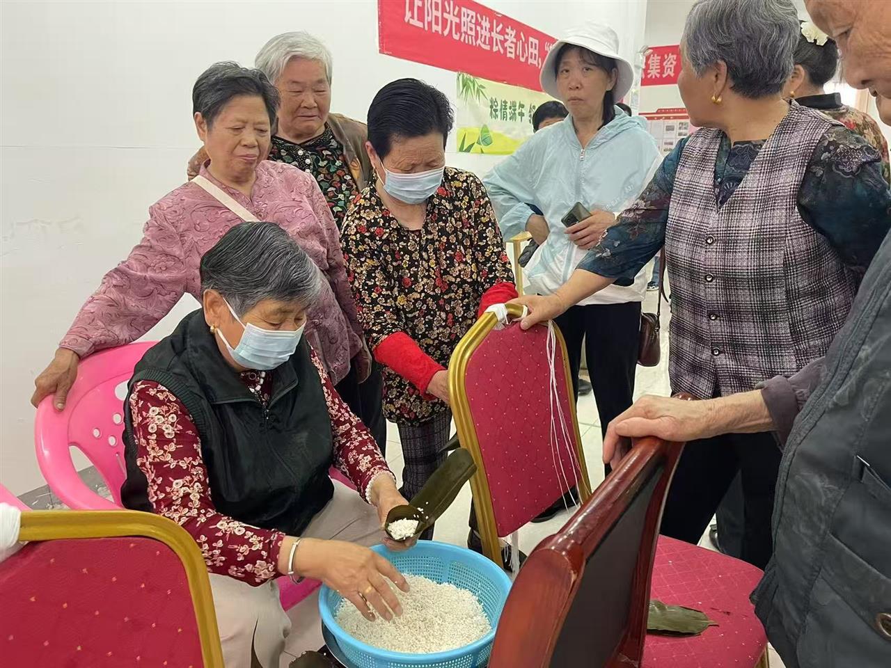 活动现场,包粽子区域成了欢乐的海洋。居民们围坐在一起,纷纷大展身手。翠绿的粽叶在他们手中灵动翻飞,雪白的糯米与香甜的馅料巧妙搭配,再用细绳紧紧扎牢,一个个棱角分明、饱满诱人的粽子便诞生了。大家一边包着粽子,一边交流着端午的习俗和家常,欢声笑语回荡在社区的每一个角落。