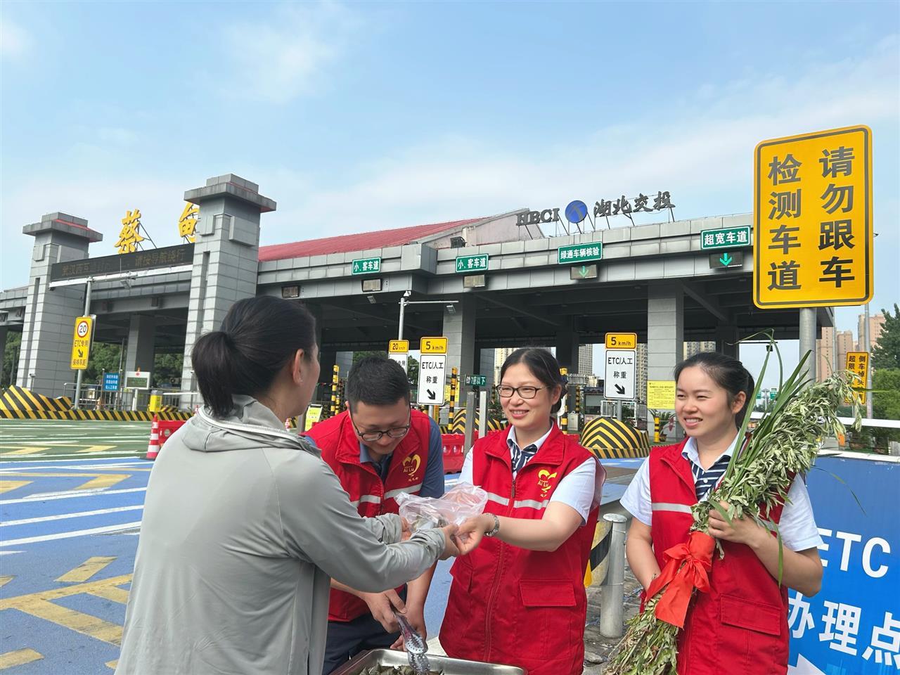 5月28日,湖北交投京珠运营公司蔡甸收费站“向日葵志愿班组”为过往司乘送粽子,让奔波在路上的人们也能感受浓浓的节日氛围。