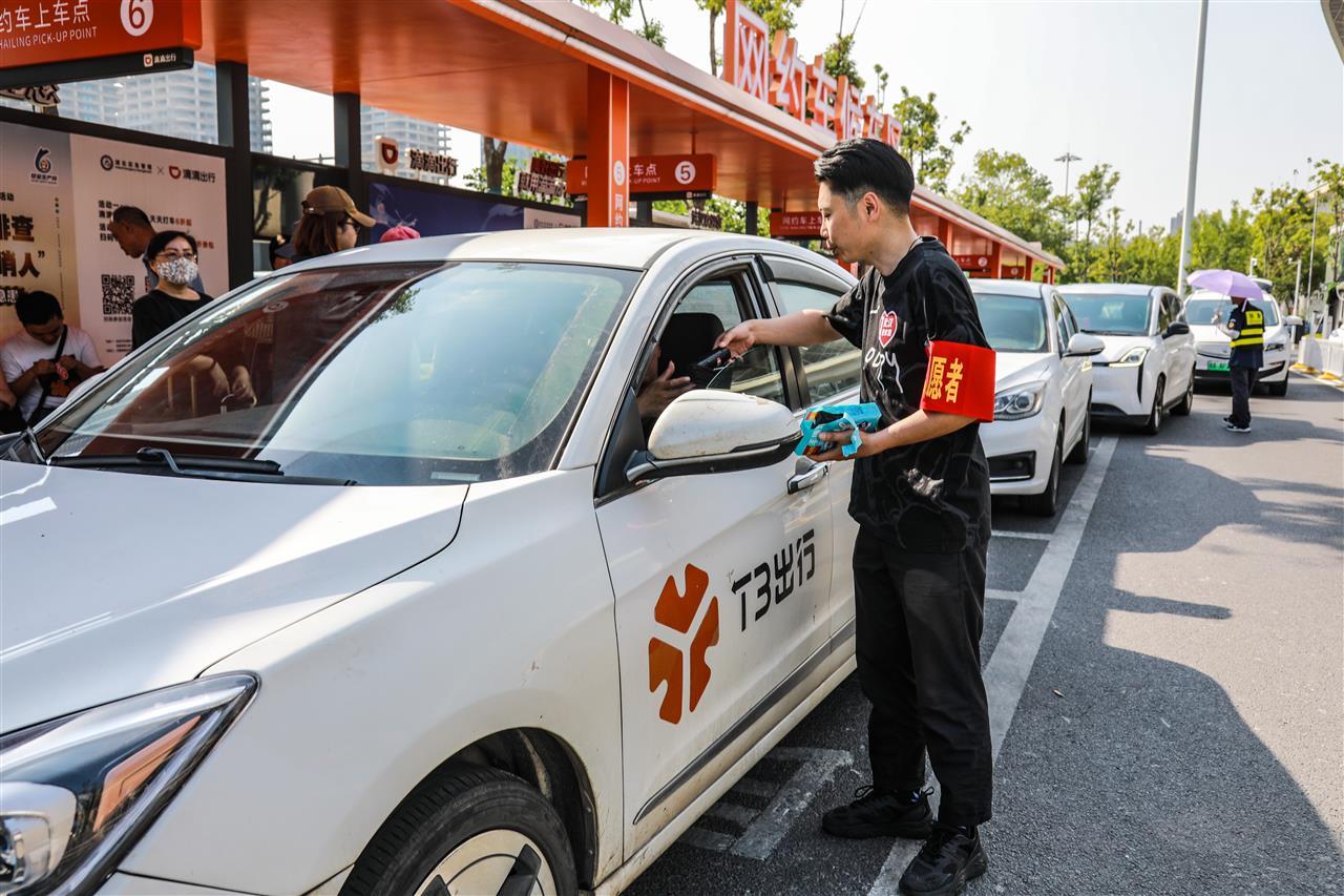 志愿者给网约车司机赠送垃圾袋