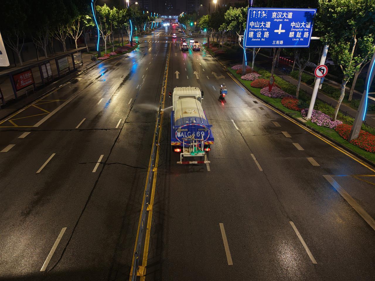 5月28日凌晨,武汉各区城管部门率先启动“道路美颜计划”,开展全城全域大清洗。围绕“四线一口”、主次干道、高架环线等路段,出动环卫作业车辆1300余台,洒水车、吸扫车、护栏清洗车等多种专业环卫车辆齐上阵,对路面、路沿石、护栏、隔离墩等进行深度清洁,让道路“容光焕发”。