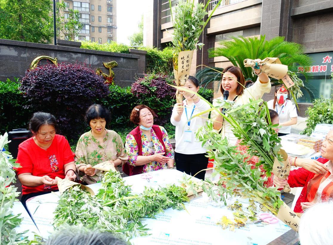 “挂艾草除秽祛毒,身体健健康康。”三弓路社区开展“端午传艾意,邻里共安康”艾草赠送活动,将饱含祝福的艾草送到居民手中。普仁易维康居家养老服务中心宣讲员现场讲述端午节的起源和划龙舟、挂艾草、佩香囊等习俗,让传统节日氛围浸润社区每个角落。