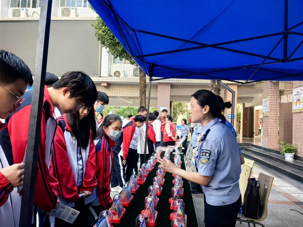 在操场上,戒毒所青年先锋队的民警们开展了毒品模型展示和讲解。针对当前新型毒品不断翻新、极具伪装性的特点,着重展示了“奶茶”“跳跳糖”等披着“甜蜜外衣”的新型毒品模型,提醒同学们在日常生活中一定要提高警惕,不要随意接受陌生人给予的食品和饮料。
