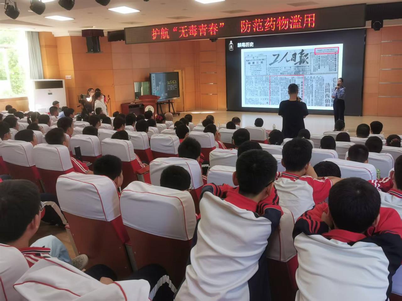活动中,民警通过播放精心制作的禁毒宣传短片,以直观、震撼的画面,向同学们展示了毒品的种类、特征,以及吸毒对个人、家庭和社会造成的严重危害。短片中吸毒者因毒品而扭曲的面容、破碎的家庭,深深触动了在场每一位同学的心灵。