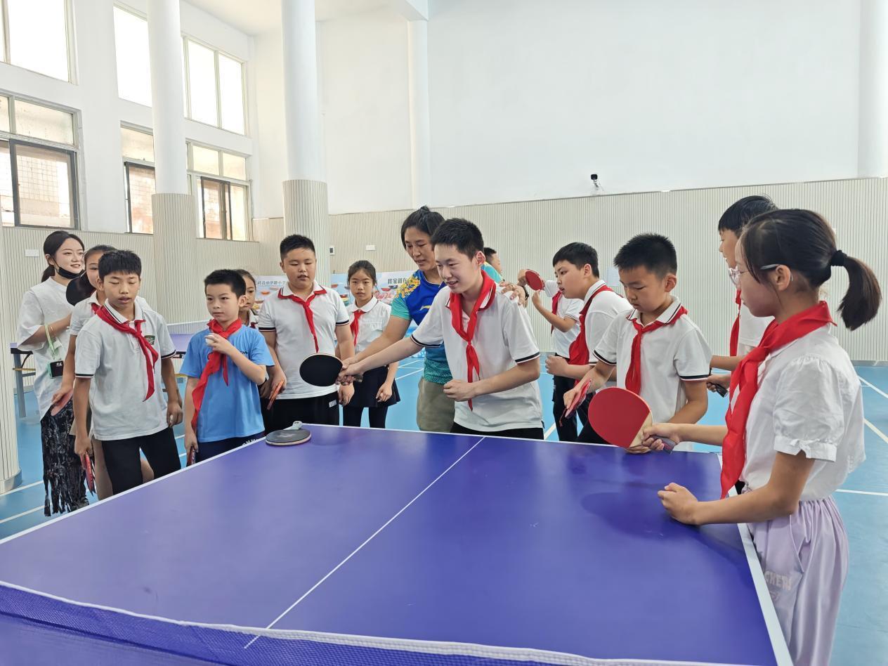 活动尾声,中华路小学乒乓球队特聘柳萌担任校外指导老师,柳萌现场俯身指导小学员们挥拍技巧,细致调整动作,传授实战经验,她鼓励孩子们:“勇敢追逐心中所爱,无惧前路崎岖。”