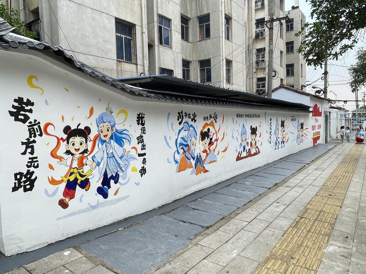 在活动筹备阶段,社区与学校联合成立了专项工作组,针对文化墙的主题及内容设计进行了深入研讨。经过多方协商,最终确定以“和谐社区,文明新风”为核心理念,将社区的人文特色与当下的时尚元素巧妙融合,精心设计了涵盖哪吒助力高考、社区治理等多元化主题的创意方案,以确保文化墙既具备教育意义,又富有观赏价值。