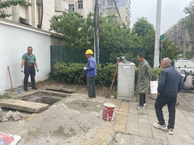 除了精心打造文化墙之外,社区与新洲三中同步推进了宿舍楼外边松动盖板的修复工作。这些盖板因长期遭受风吹日晒,已出现不同程度的松动和破损,且下水堵塞,给居民生活带来了安全隐患。为此,新洲三中专门组织专业人员进行了全面的检查与维修,确保每一块盖板都牢固可靠,为居民营造了一个安全、舒适的居住环境。