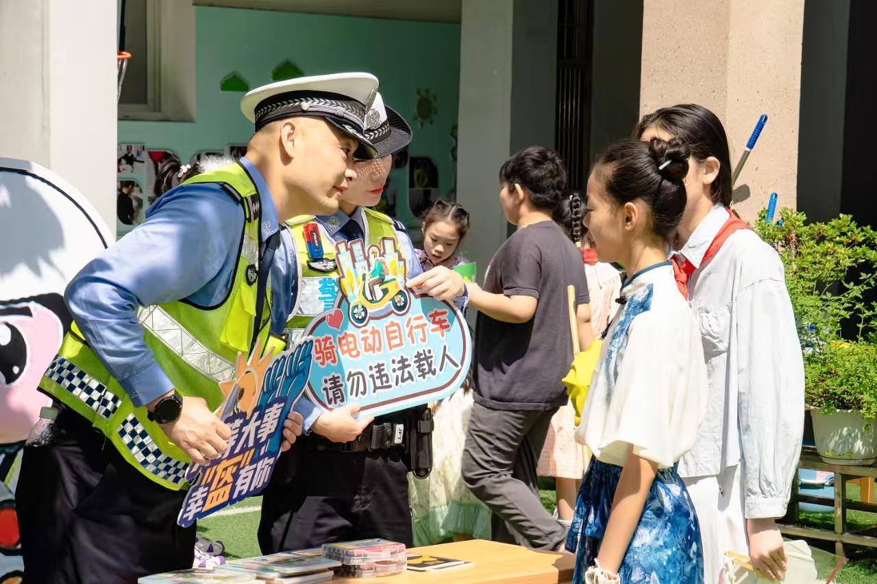 “骑电动自行车要注意什么?喝酒后能开车吗?能骑电动自行车吗?”一个个贴近生活的交通安全问题抛出,立刻点燃了孩子们的热情。他们纷纷高举小手,争先恐后地抢答,虽然声音稚嫩,但掌握的交通安全知识毫不含糊,他们也收获了不少心仪的奖品。
