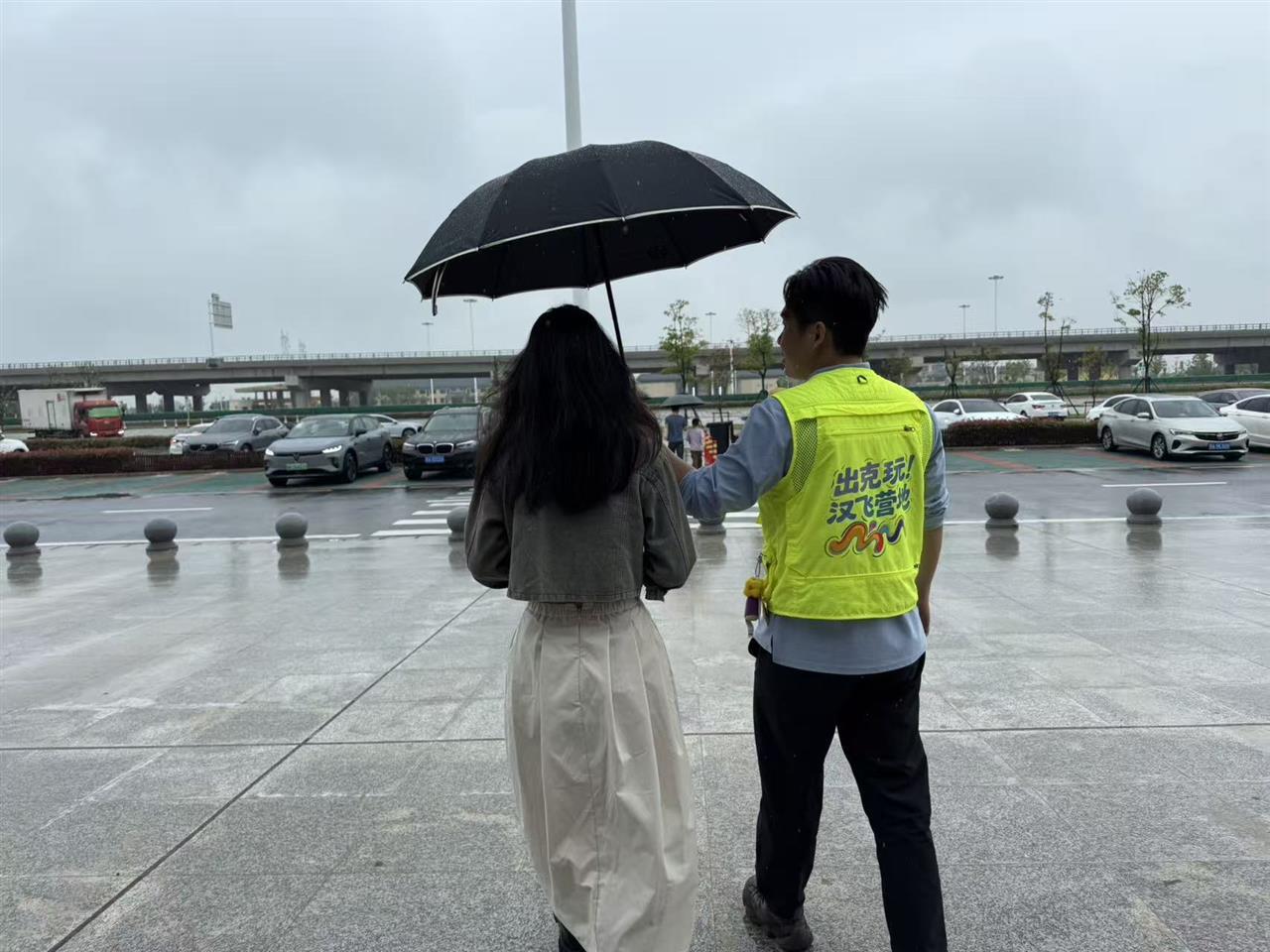 梧桐湖服务区的工作人员也在雨中展现出暖心服务。他们为乘客撑伞,帮扶行动不便的旅客,用真诚和热情服务每一位过往旅客。服务区职工用温暖的服务诠释了国企担当,为旅客的旅途增添了一份温情。