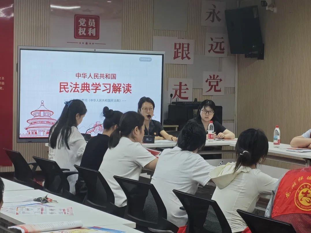 近日,武汉经济技术开发区人民法院军山法庭干警走进龙湖社区,开展民法典普法宣传活动,通过通俗易懂的讲解、生动鲜活的案例,与社区居民进行深度交流。