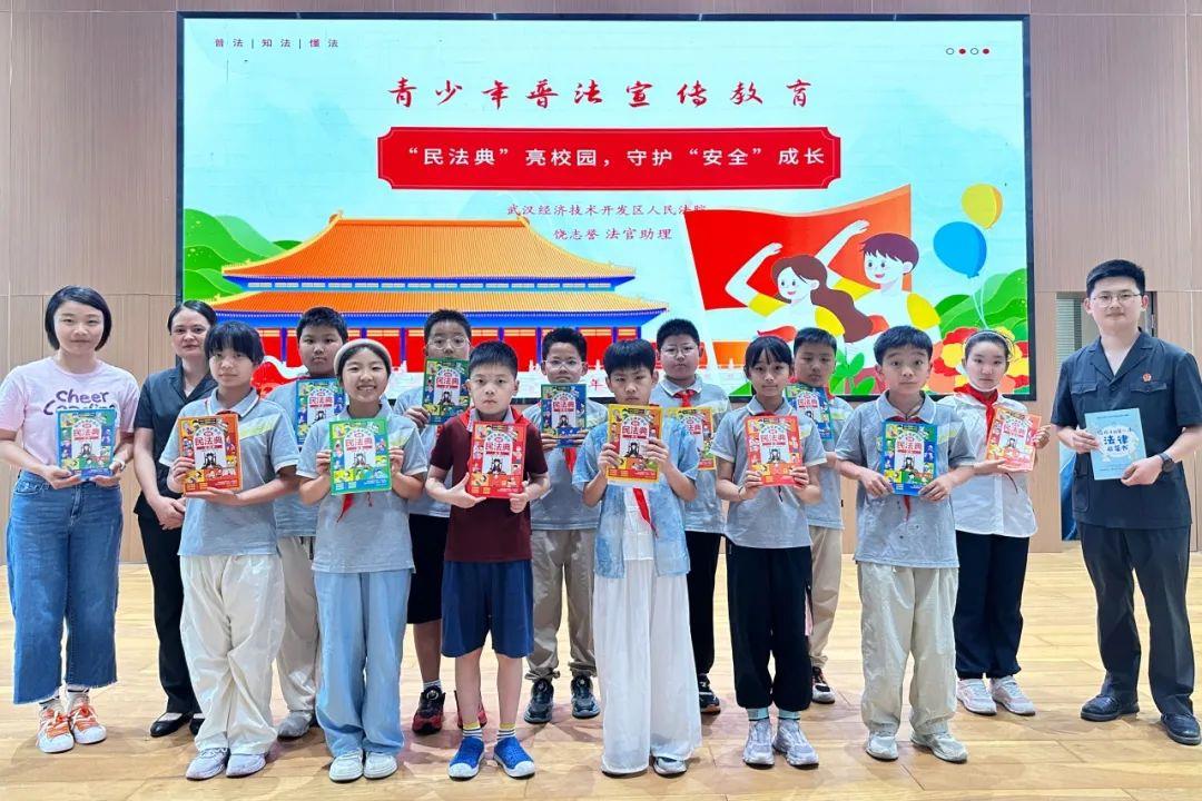 在第五个“民法典宣传月”期间与“六一”儿童节来临之际,近日,武汉经开区人民法院民事审判庭干警化身“法治讲师”,走进武汉经济技术开发区实验小学,开展一场以“‘典’亮校园,安全成长”为主题的法治教育课。