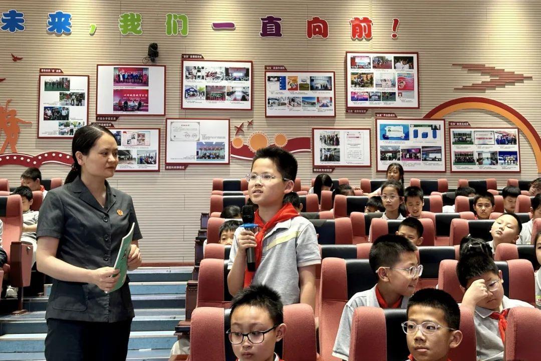 “如果遇到类似情况你会怎么处理?”“案例中的小朋友哪些行为值得学习、哪些行为不值得学习?”法官助理饶志誉聚焦民法典侵权责任编,以法院办理的校内外人身损害案件为切入点,详细列举在体育课、教学楼、游乐场、小区里等不同场景发生的人身损害案例,通过开放式互动问答引导学生积极思考,现场气氛热烈,十余名小朋友积极回答问题并获得了民法典普法图书。