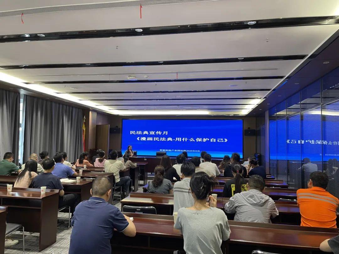 活动中,智造园法庭法官就民法典的生效及重大意义进行了宣讲,对民法典中涉及社会、亲情、家庭、生活、校园等方面如何保护自己进行了生动讲解。