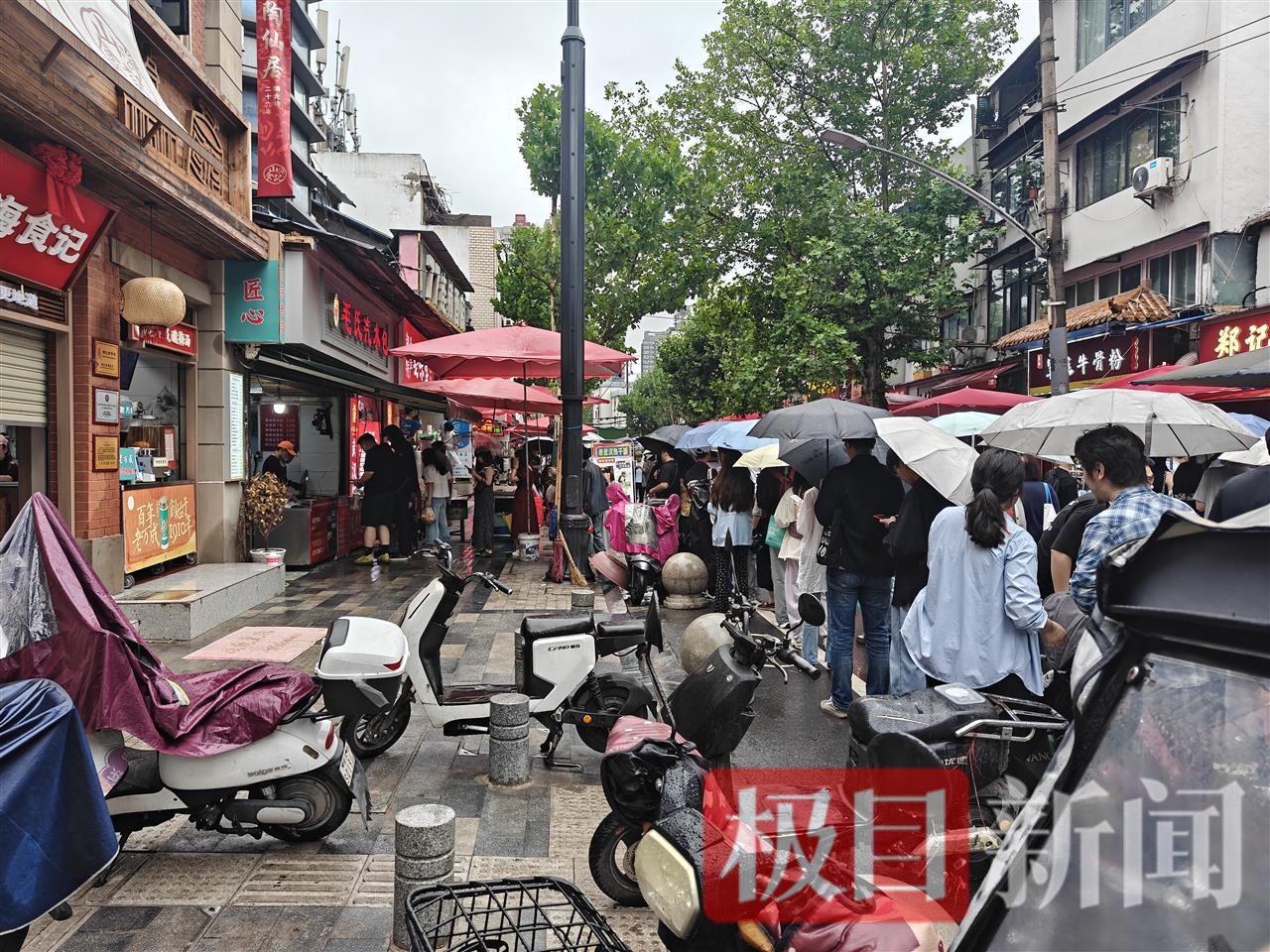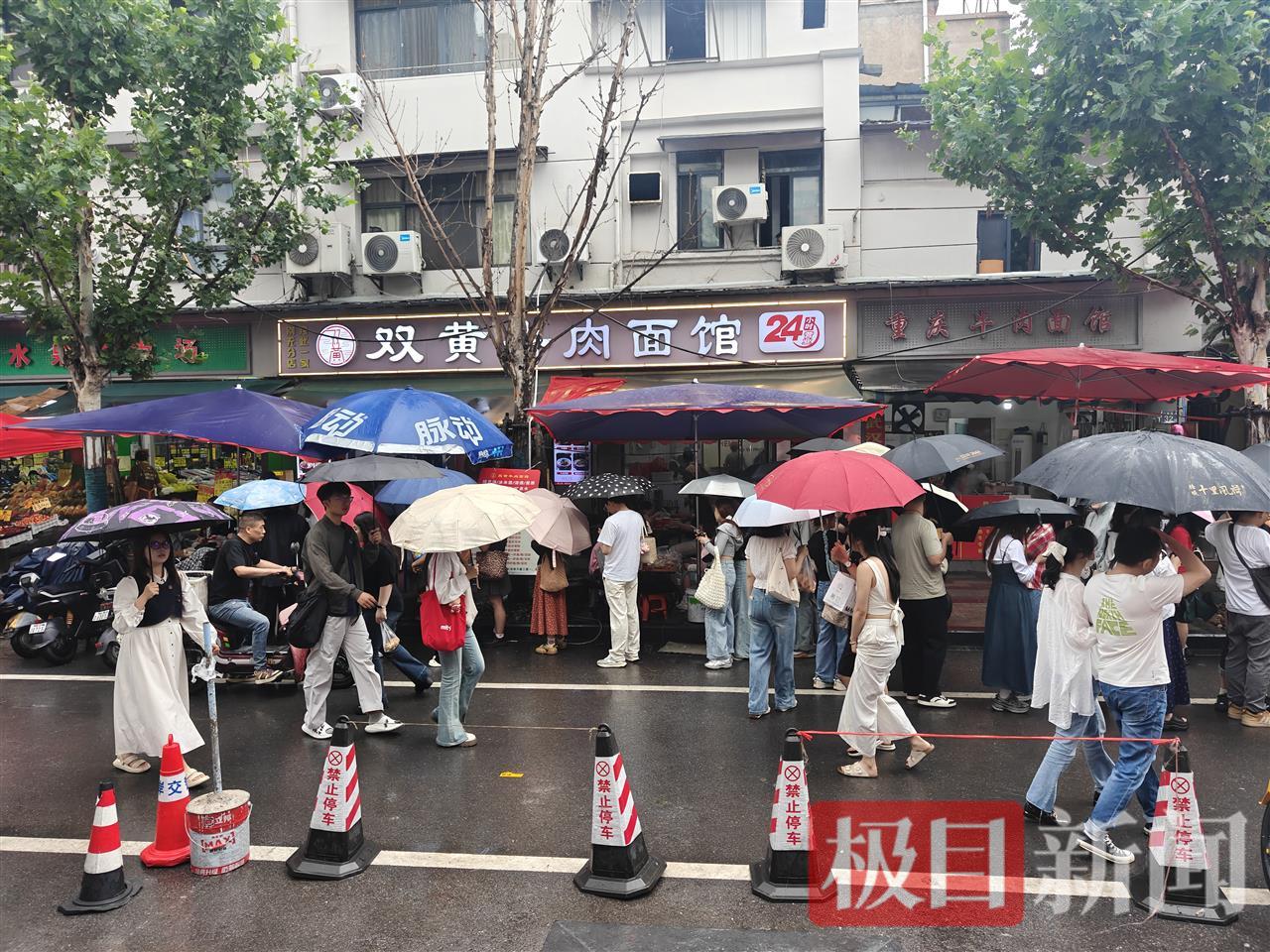 6月1日,正值端午假期和儿童节叠加,即便天空淅淅沥沥地下着雨,也丝毫未能浇灭游客们寻味山海关路美食的热情。