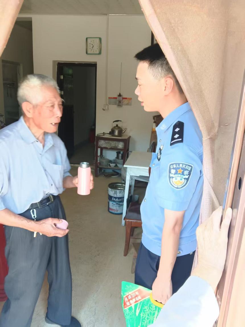 “最近天气炎热,您要注意防暑降温,如果家里有任何困难,请随时联系我们。”5月30日,端午节前夕,庙山派出所民警伍文捷在普安村干部的陪同下,走进该村五组困难老人喻安雄家中,为其送去米油等物资,并详细了解家庭近况。