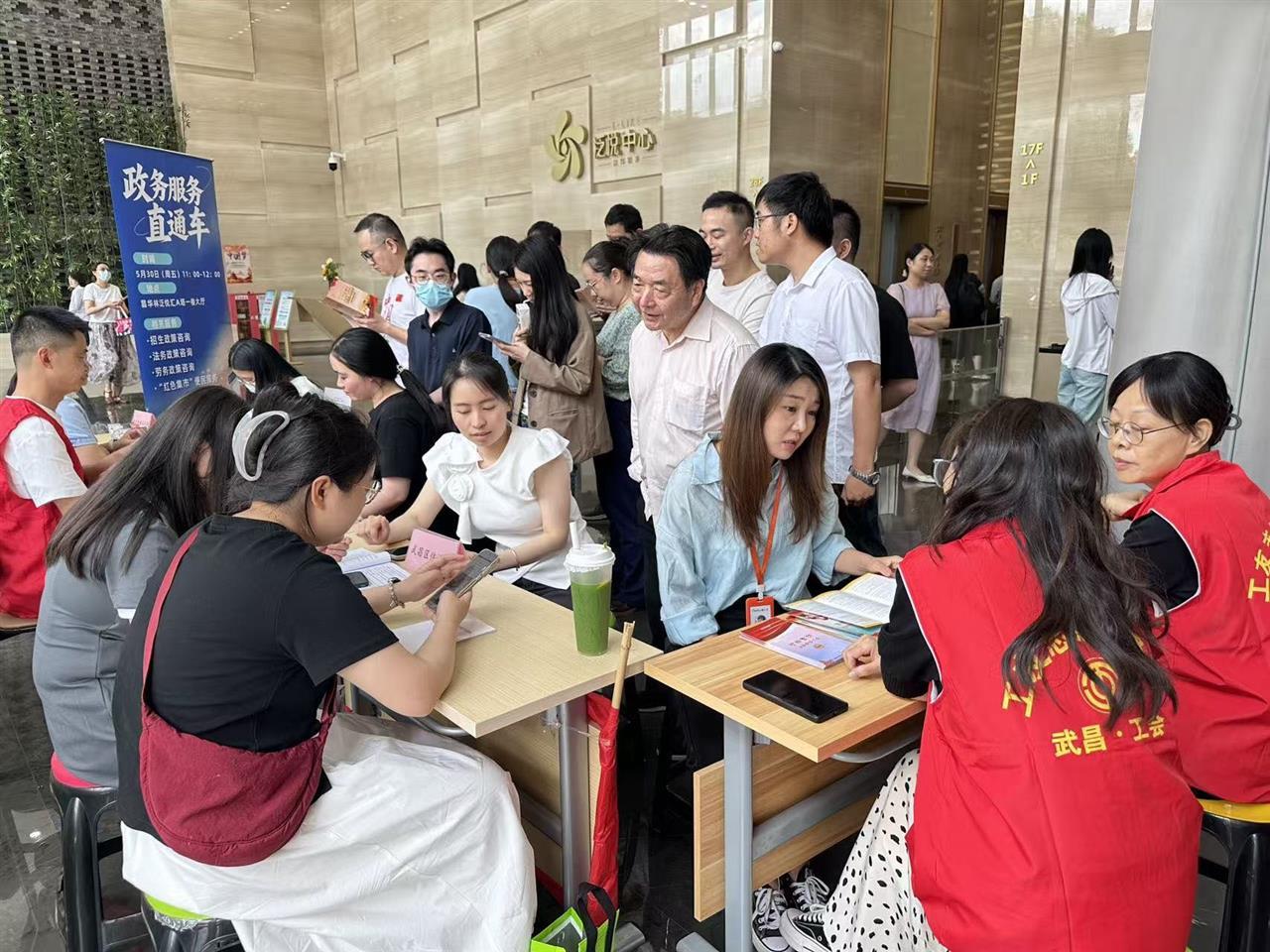 5月30日,武汉市武昌区楼宇政务服务直通车暨公共法律服务大篷车开进昙华林泛悦汇,为文创企业及员工送去“一站式”政策与法律服务。