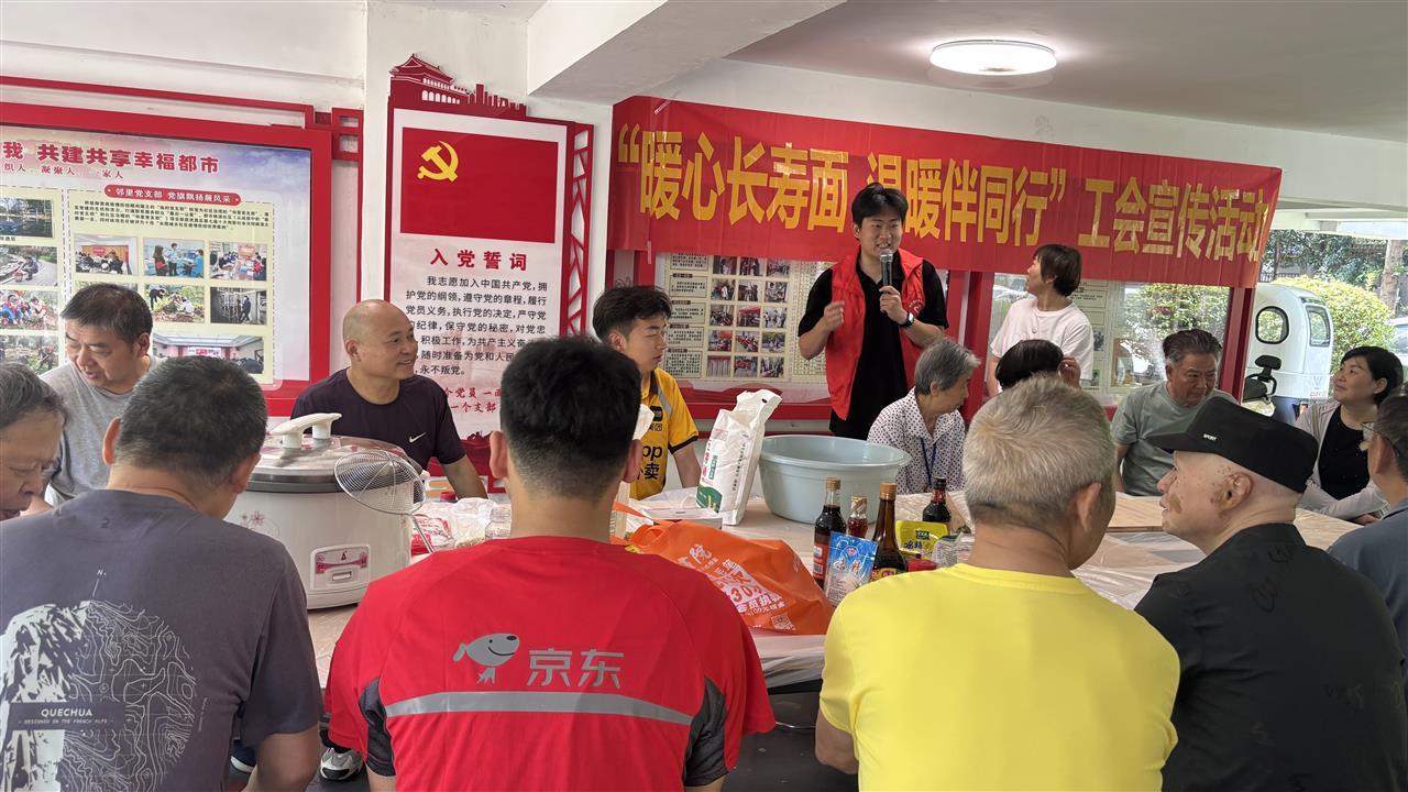 5月30日,武汉市武昌区南湖街道都市桃源社区工会举办“暖心长寿面 温暖伴同行”主题活动,20余名来自社区工会、新就业群体及新业态群体的职工齐聚一堂,共享欢乐时光。