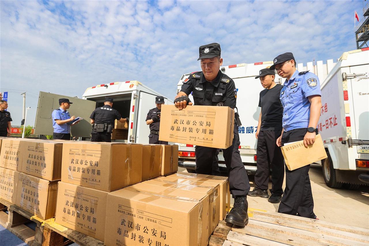 6月3日清晨,在公安特警、禁毒民警押送下,108箱印有“毒品”字样的纸箱被运到蔡甸区某危化物品处理厂,整齐码放在热解炉前,数十名全副武装的特警在现场警戒。