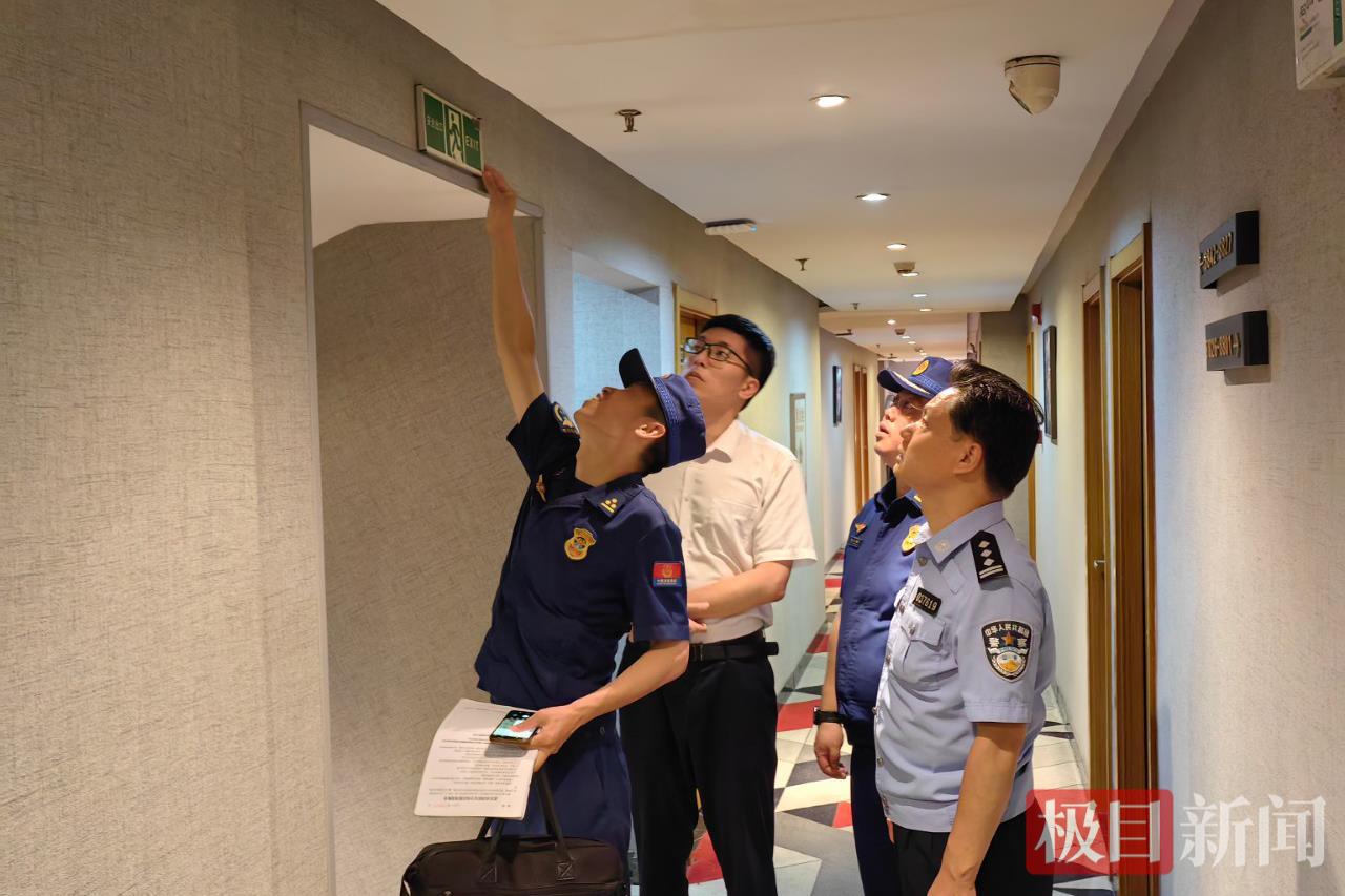 在蔡甸区某酒店内,消防监督员发现应急疏散指示标识损坏,立即对酒店负责人提出整改建议。当晚,武汉消防联合公安、商务及属地街道分组对辖区3个高考考点周边酒店宾馆开展了消防安全集中夜巡行动。巡防组要求酒店负责人务必要进一步加强消防安全管理,切实把消防安全工作做细、做实。