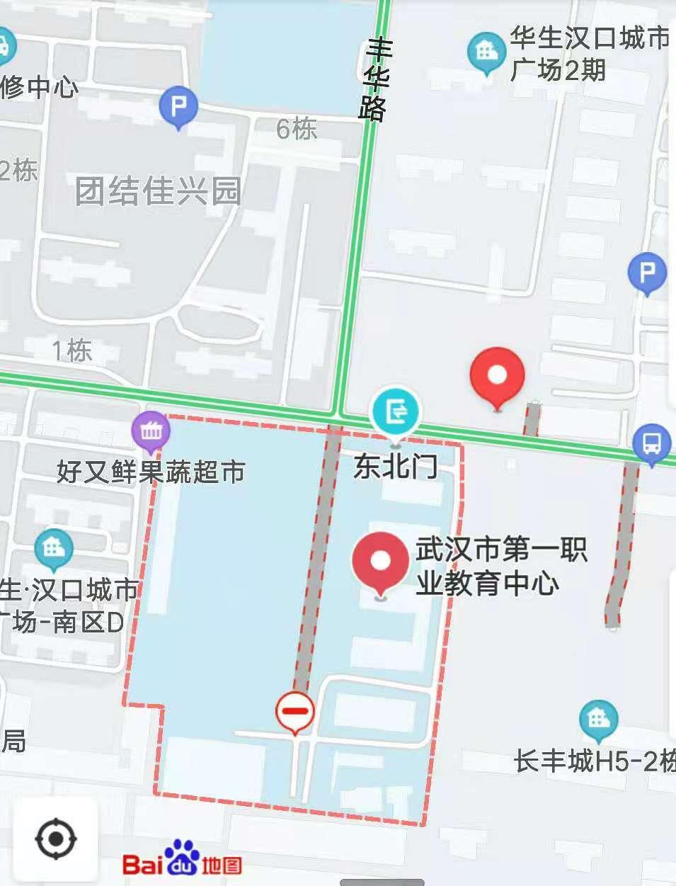 武汉市第一职业教育中心位于硚口区长风路42号,长风路双向两股车道,周边大型小区集中,目前由于道路施工,只允许车辆由东向西行驶,通行效率低。设置考场16个,考生465名。