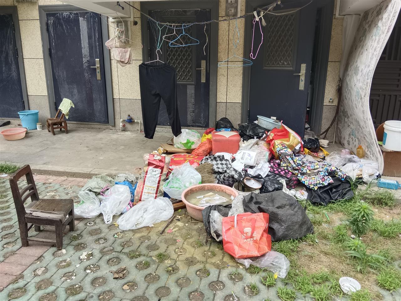 楼栋前堆积的废品